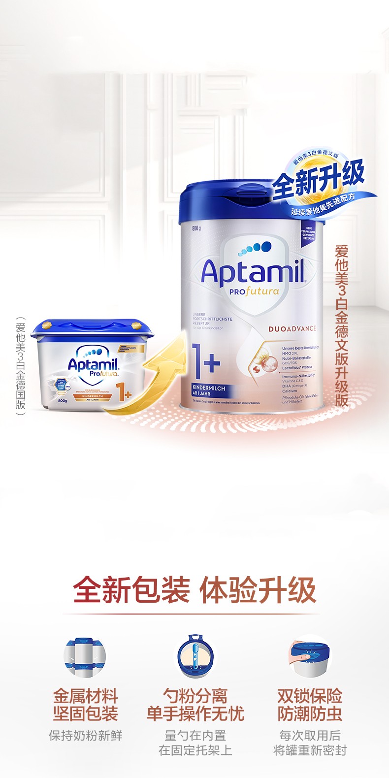 德国Aptamil爱他美婴幼儿配方奶粉白金版1+段800g1-2岁