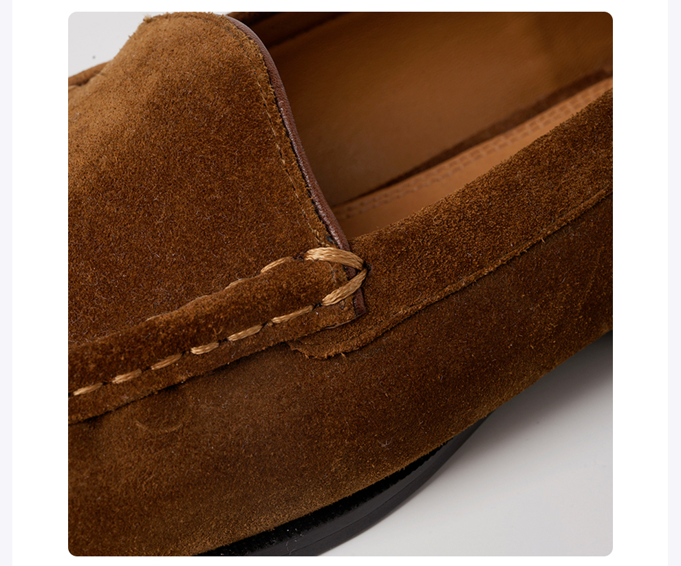 ROMI STUDIO “棕标甄选” 牛反绒拼羊皮马克线英伦乐福鞋 24SSS058