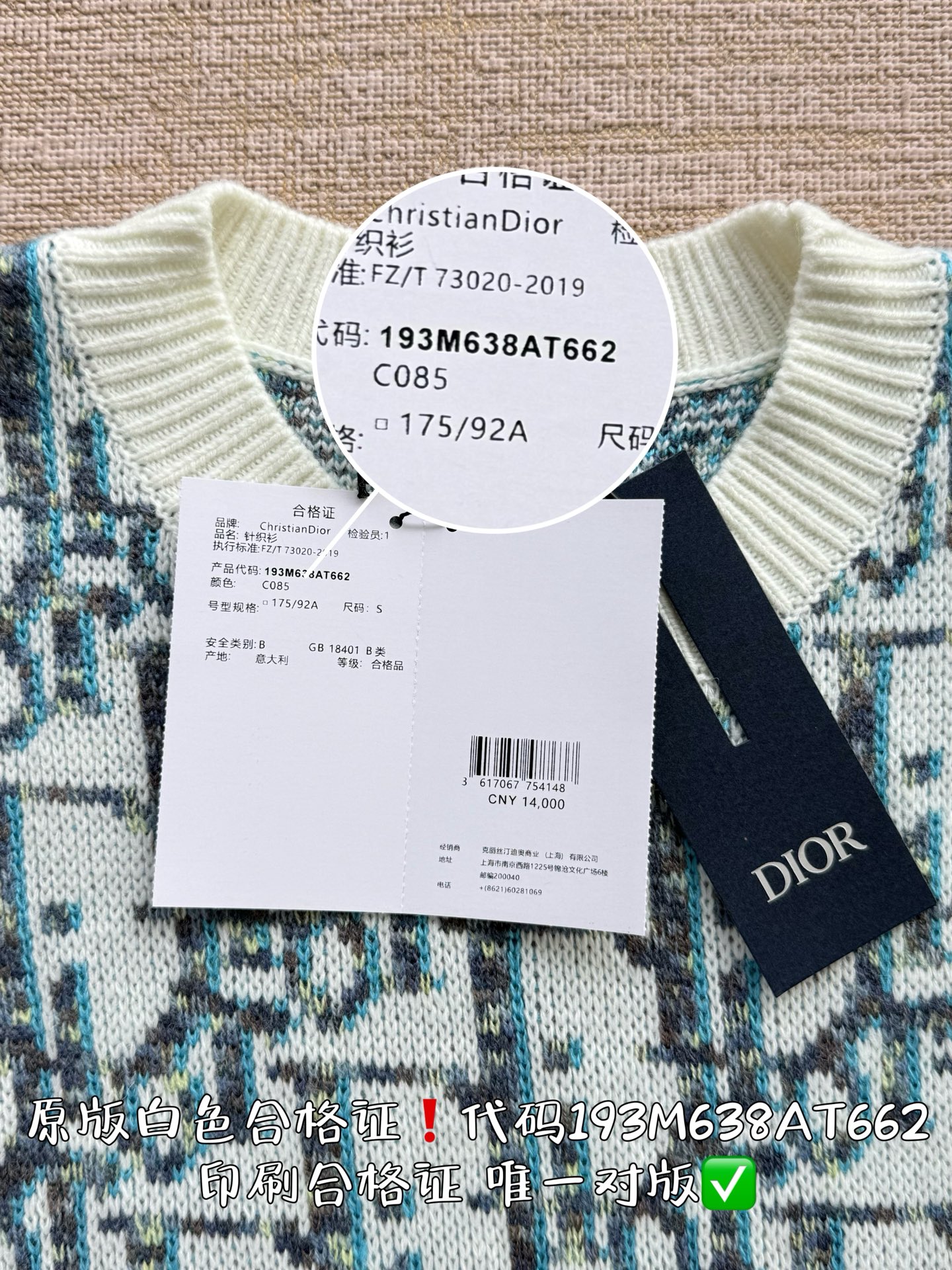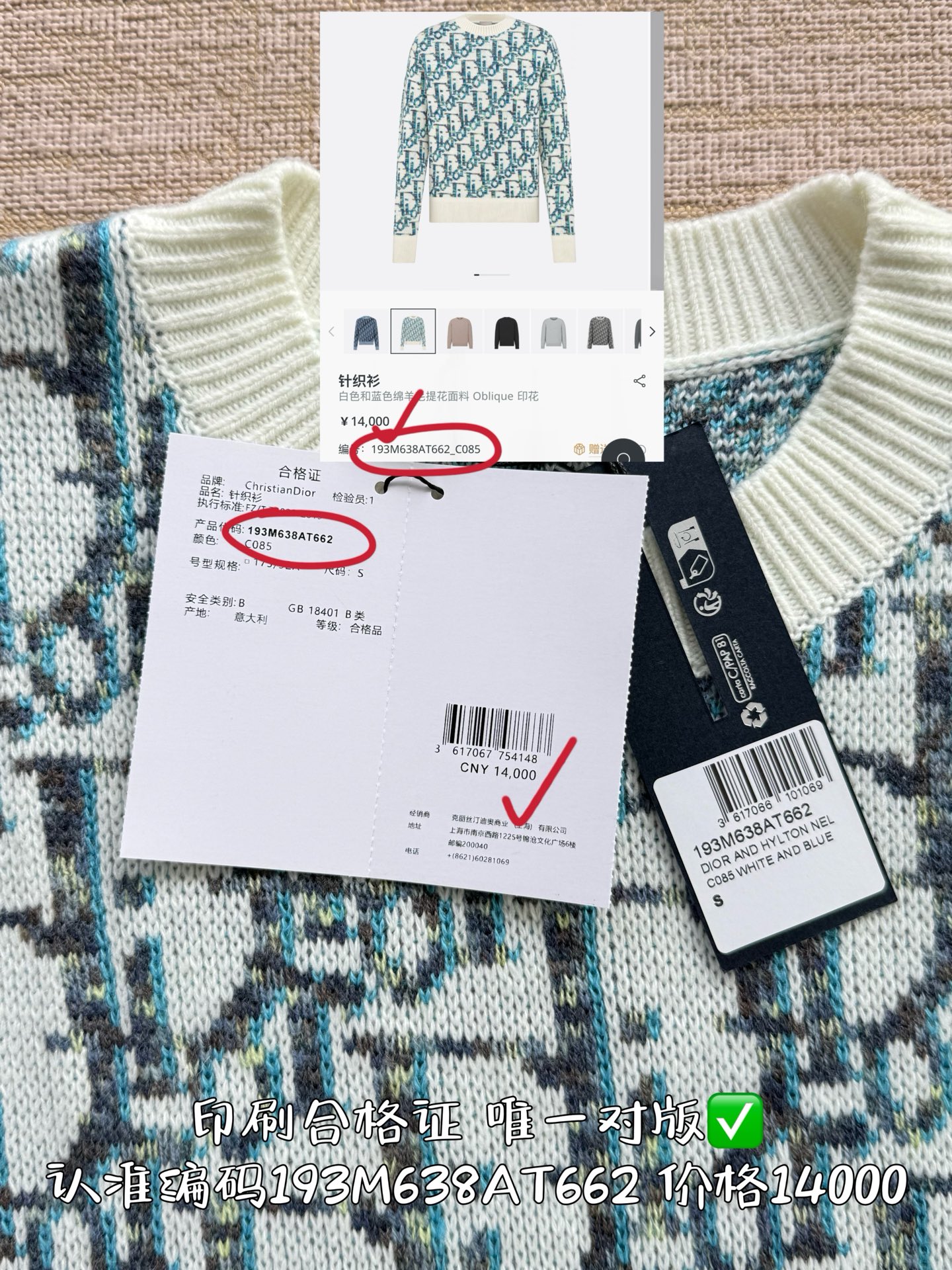 印刷合格证代码193M638AT662 唯一对版✅