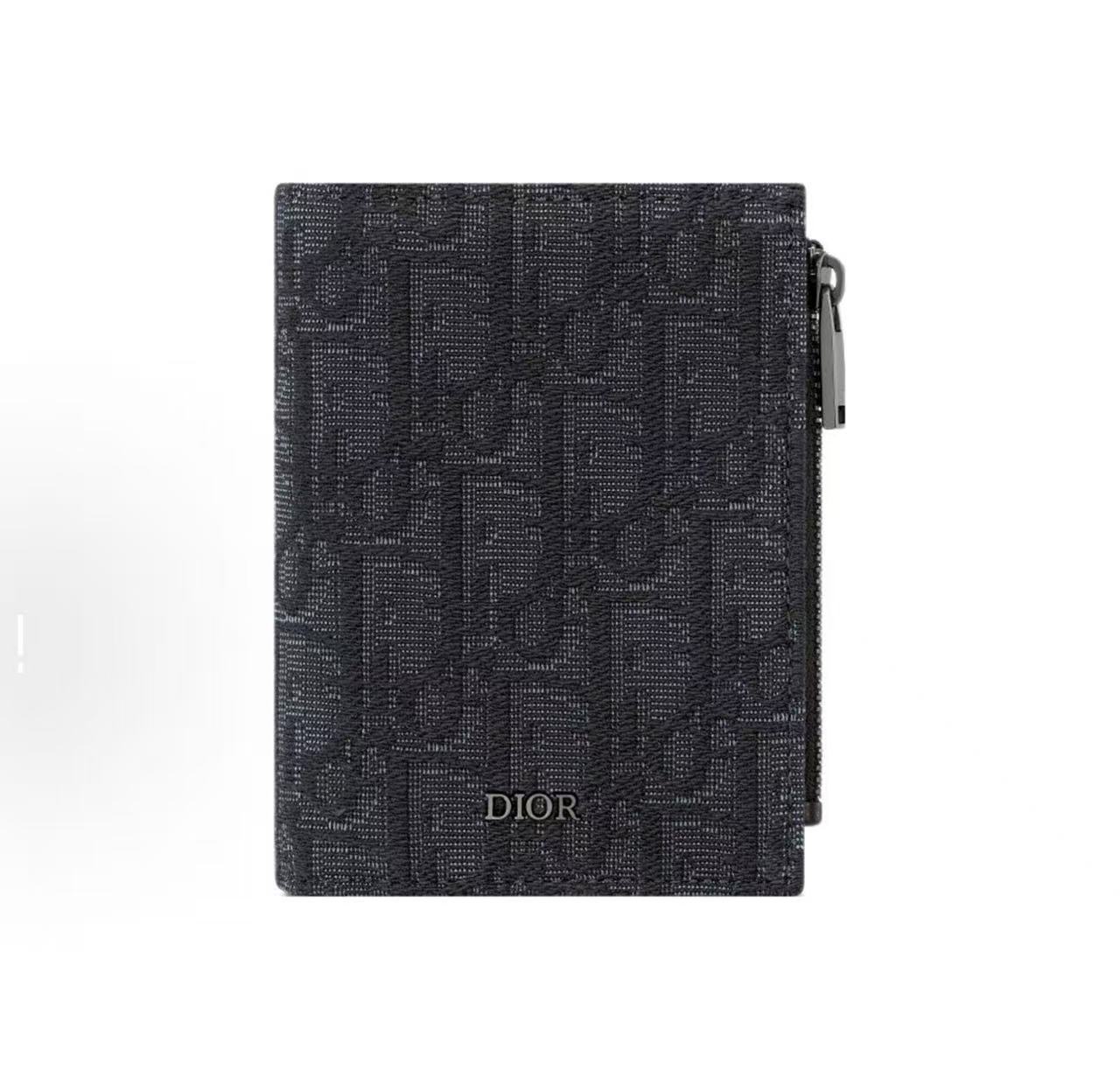 DIO*迪奥 字母徽标双折设计 Oblique提花织物 卡包 男款 黑色全