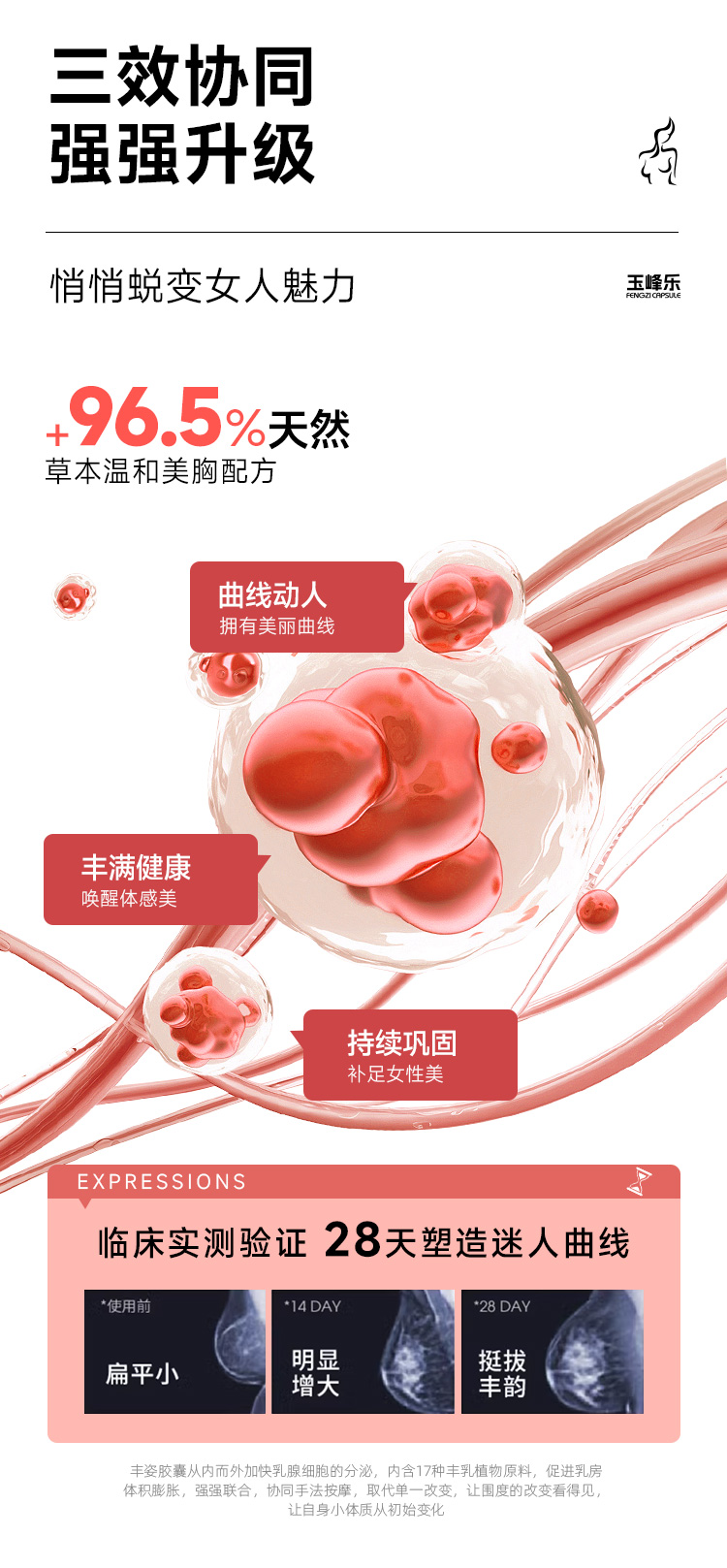 玉峰乐丰胸是正规品牌,其中的木瓜和葛根都有助于乳房的第2次发育,有助于乳房局部的血液循环,也有助于乳房增生的调理和改善,可以帮助游离的脂肪向乳房的地方靠近,坚持使用下去就有良好的丰胸效果。而且在服用之后身体健康方面、肌肤方面、内分泌方面,都会得到很好的缓解。