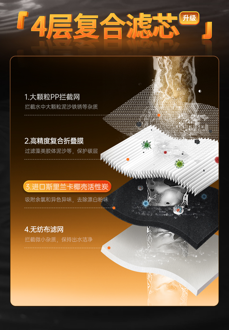 WISESKY黑积木2.0双出水净水器WSRO-1000-M2G官方原装活性炭净水机一体式炭纤维复合滤芯WSKP-100-C