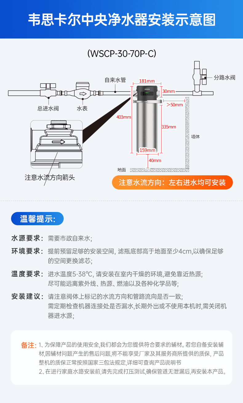 韦思卡尔大白瓶前置过滤器不锈钢中央净水家用自来水全屋除氯70P