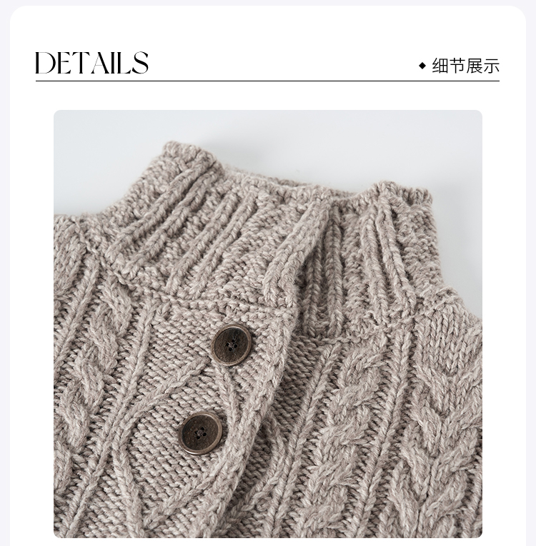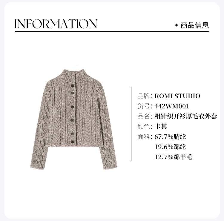 ROMI STUDIO“温暖已至”绵羊毛混纺麻花立领复古开衫外套 442WM001