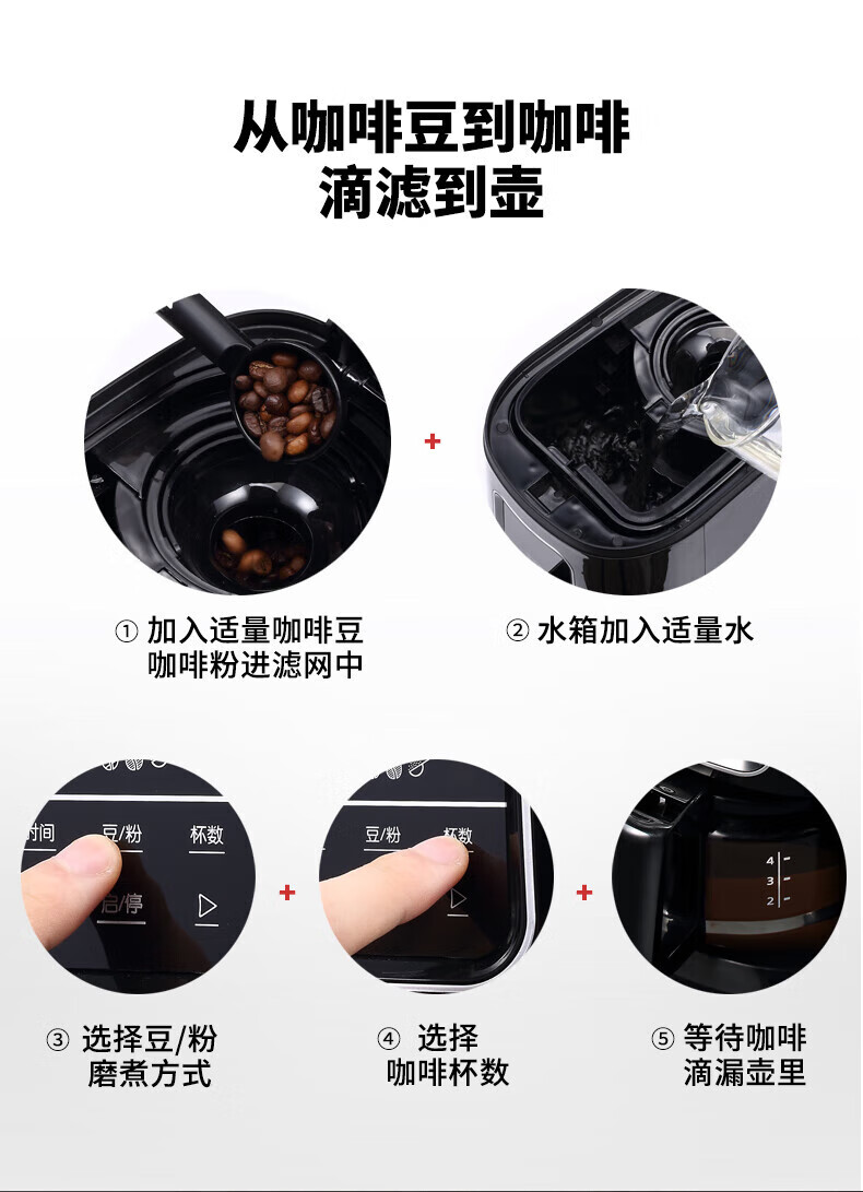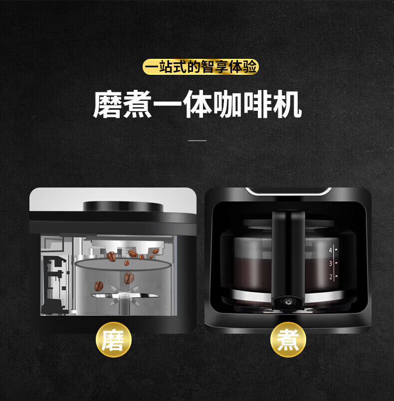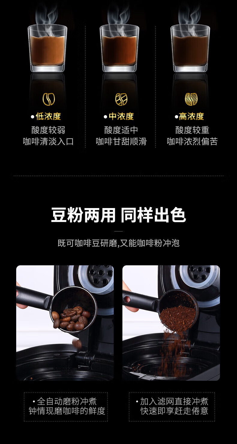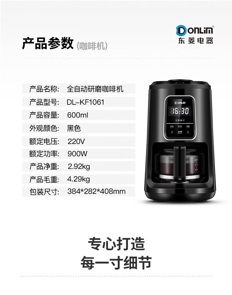 东菱(Donlim)半全自动家用咖啡机现磨美式小型滴漏式智能一体机办公室意式浓缩 DL-KF1061