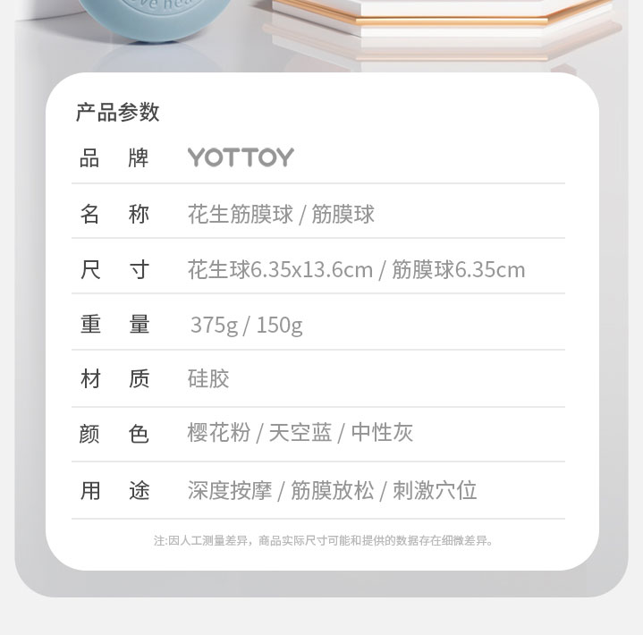 筋膜球【YOTTOY】筋膜球花生球足底按摩球肌肉放松瑜伽花生球大号健身脚底足弓放松