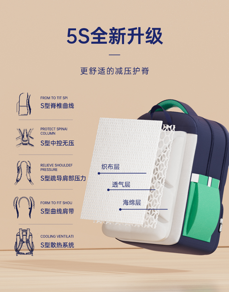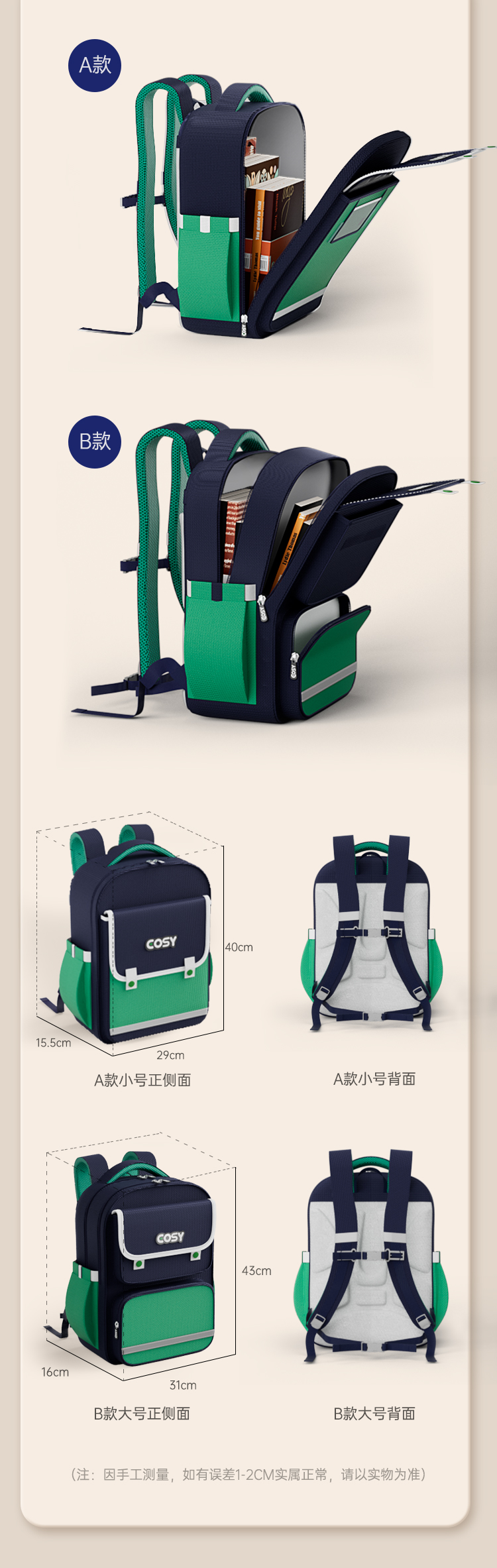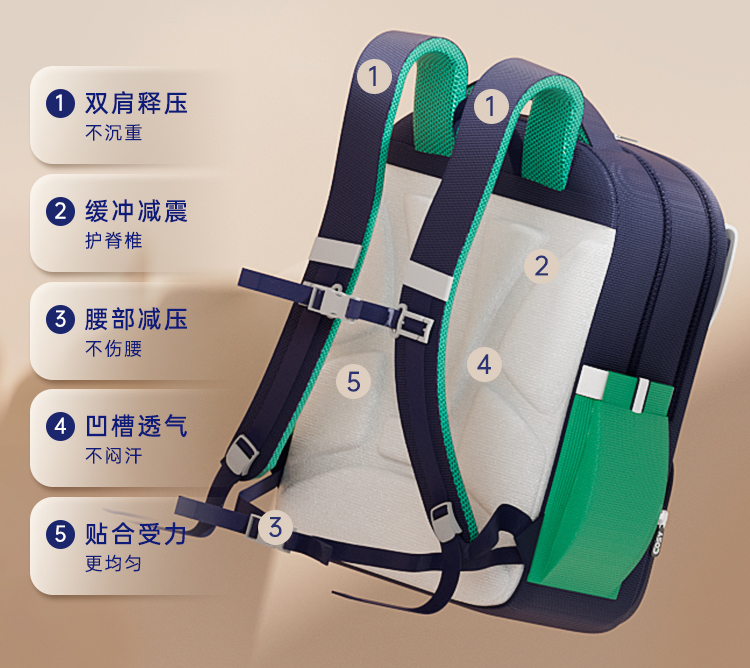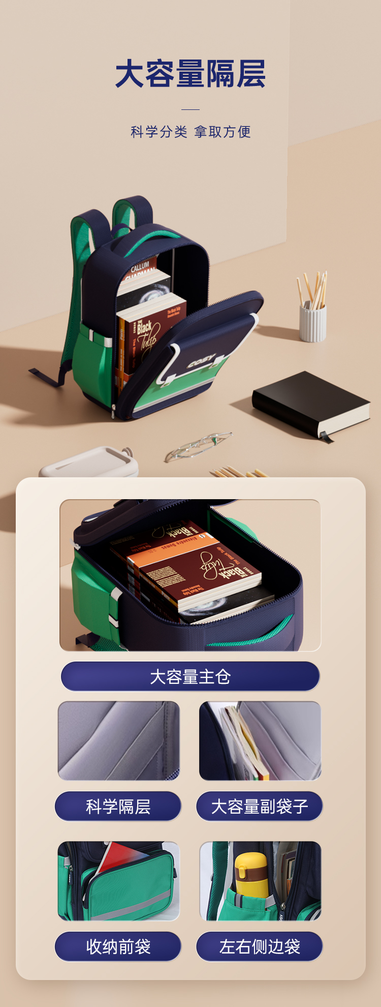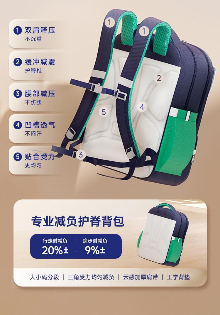 壹鹿童英伦风人体工学设计减负护脊书包赠补习袋+笔袋