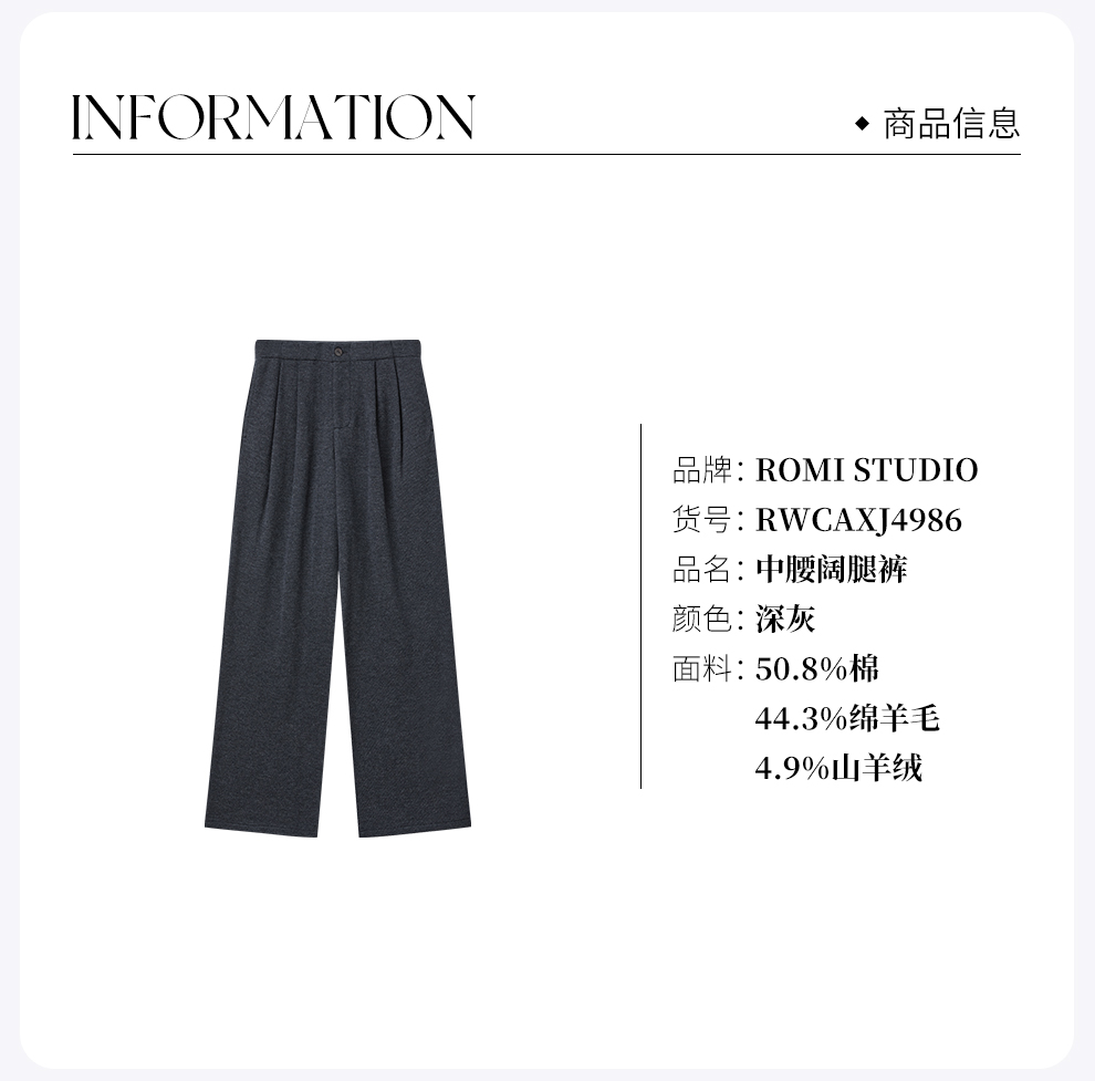 ROMI STUDIO“松弛随性”山羊绒羊毛混纺斜纹肌理阔腿裤 RWCAXJ4986