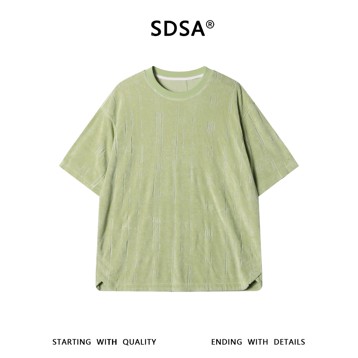SDSA男装2026新款高贵轻奢潮牌竖纹肌理绒面短袖T恤百搭宽松上衣