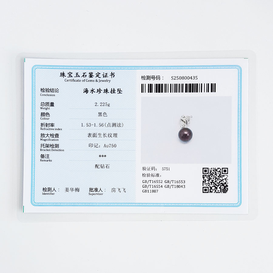 【天然正品】周大福AU750白金镶钻镶天然约9.6MM近无暇正圆大溪地海水珍珠吊坠项链21.6*9.6*9.6MM(皆取最大值)女士现售价:2880!140825NJM12
