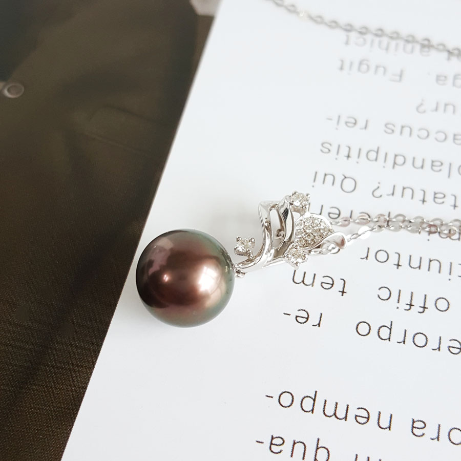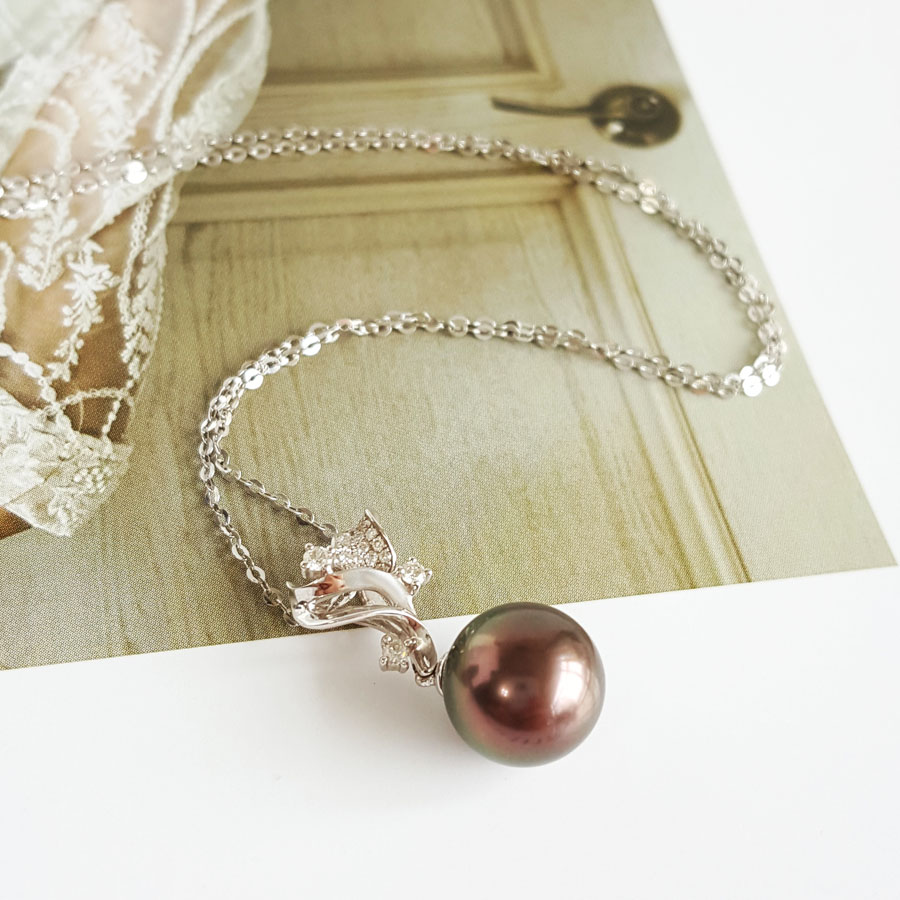 名称 | 周大福AU750白金镶钻镶天然约9.6MM近无暇正圆大溪地海水珍珠吊坠项链 |