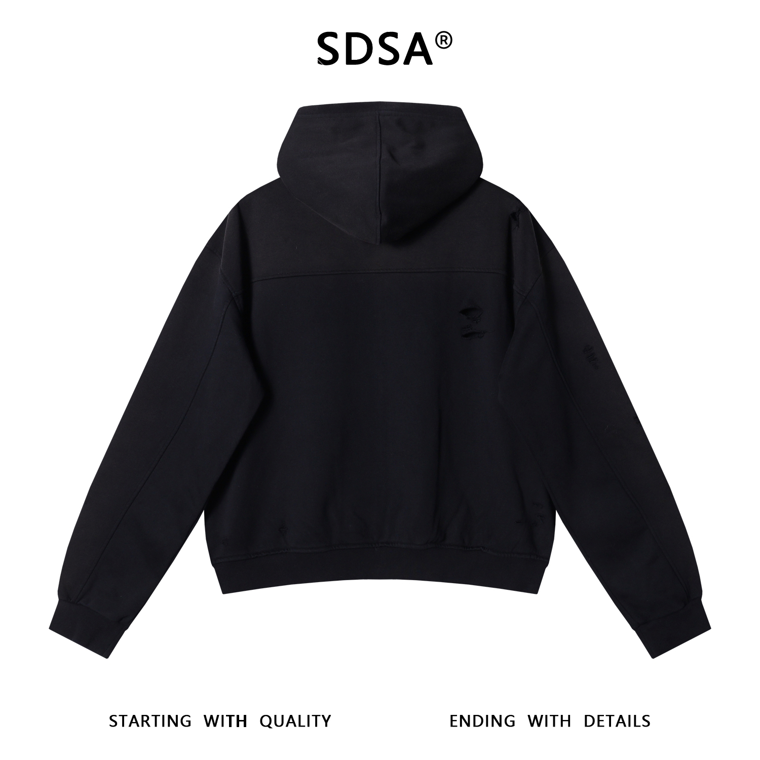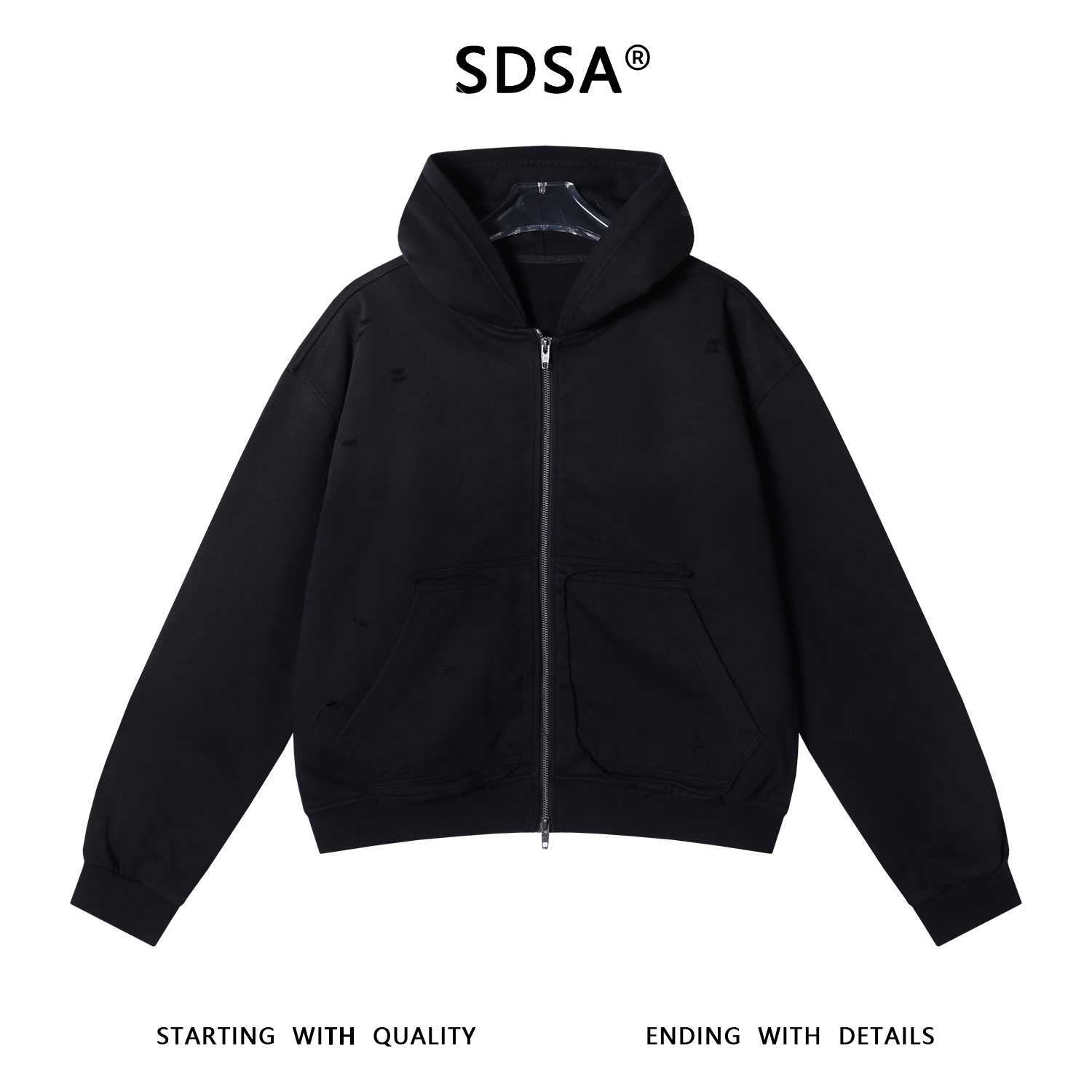 87650SDSA男士春秋新款痞帅男装破洞拉链连帽短款卫衣潮牌宽松开衫上衣