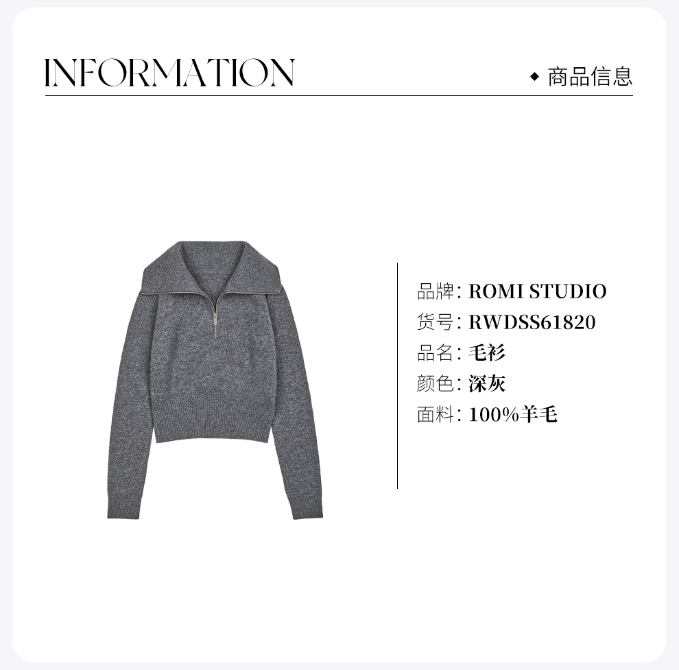 ROMI STUDIO“格雷高支”100%羊毛密织半高领毛织开衫 RWDSS61820
