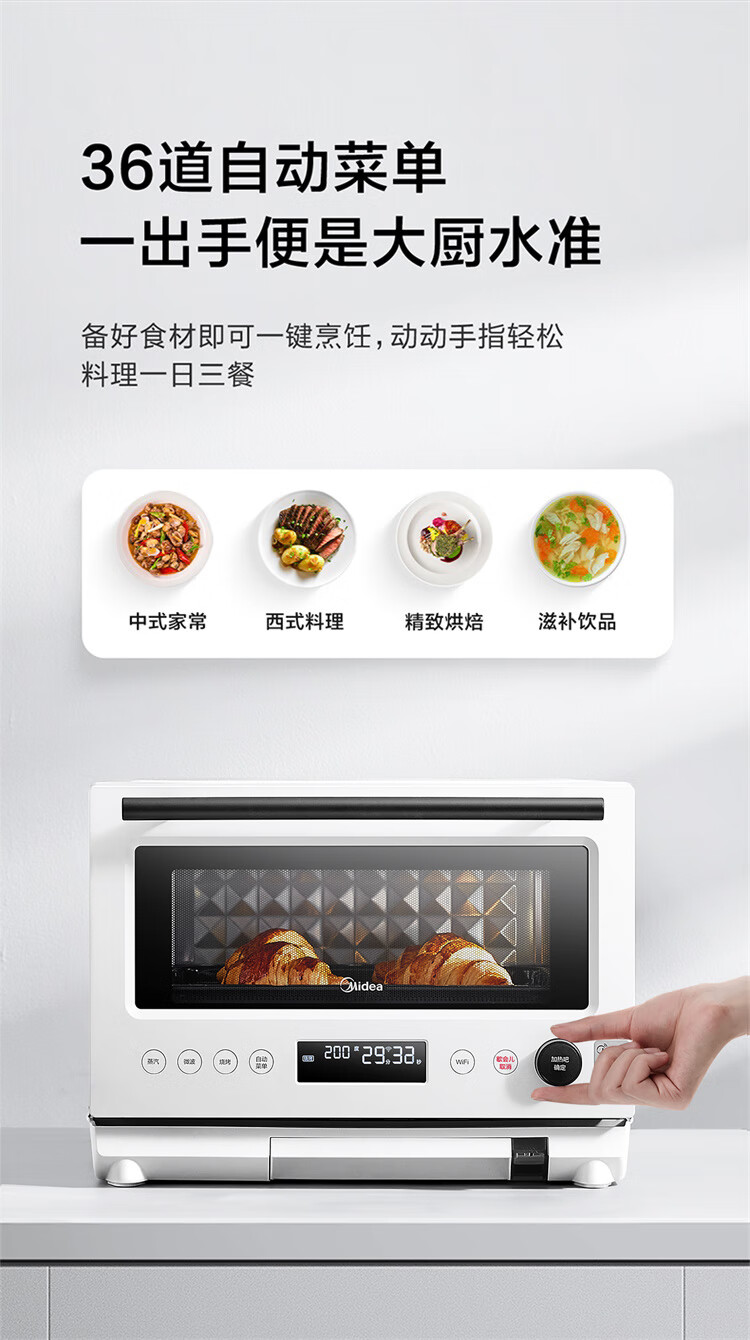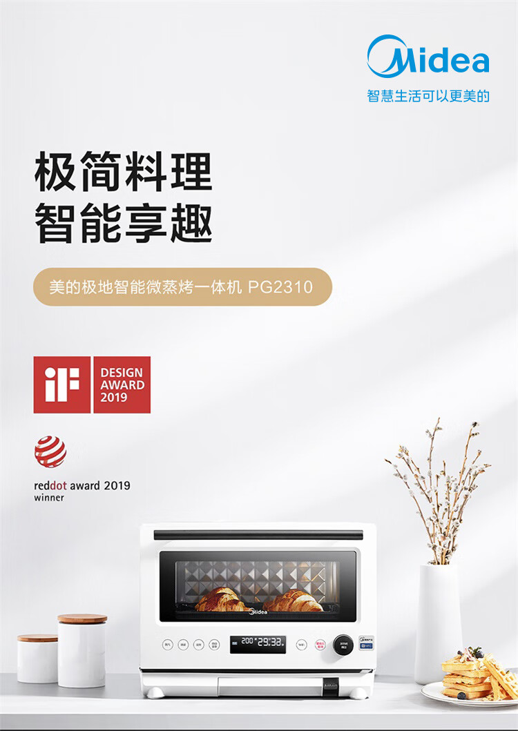 美的(Midea)微波炉 微蒸烤一体机 家用变频微波炉烤箱蒸箱 多功能 23L不锈钢内胆(PG2310)