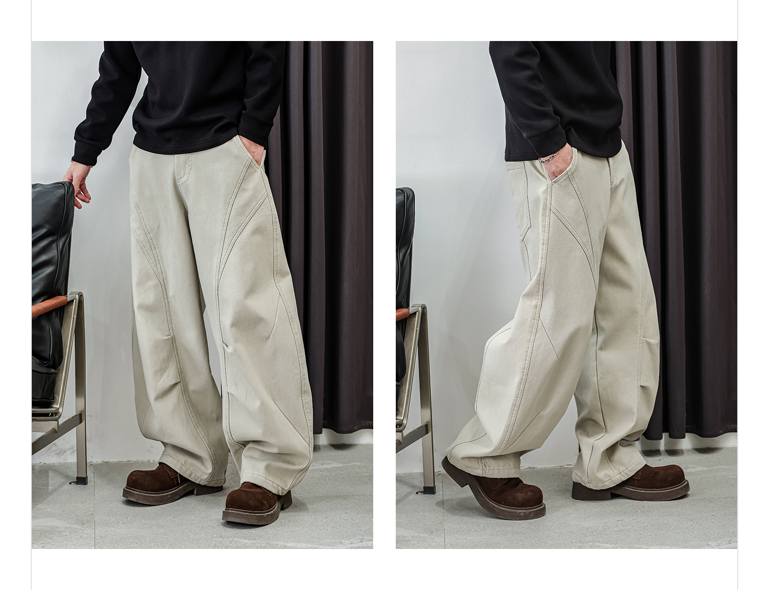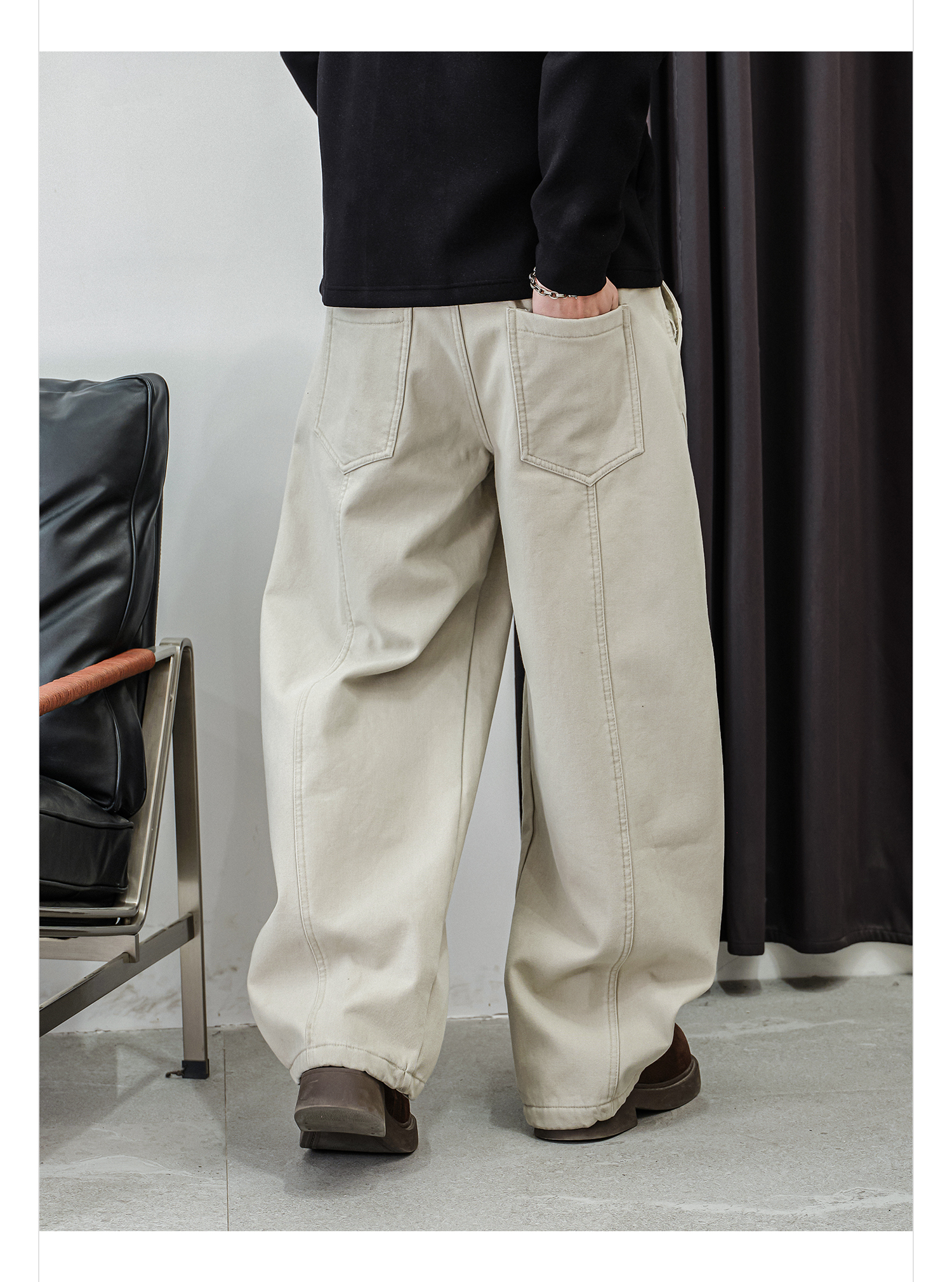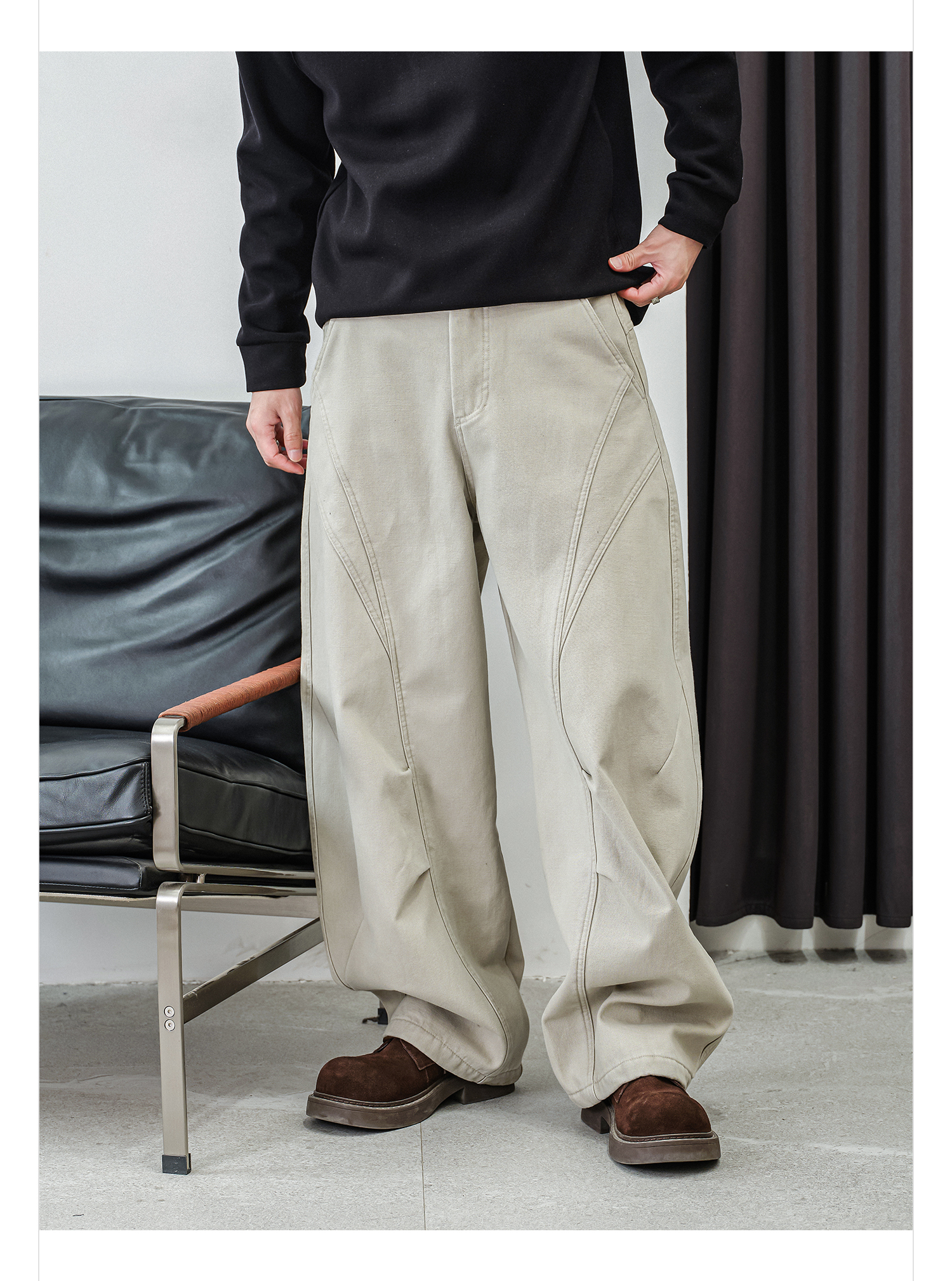 徐太浪【缉明线 立体裁剪】休闲裤男秋冬款宽松直筒裤子通勤长裤