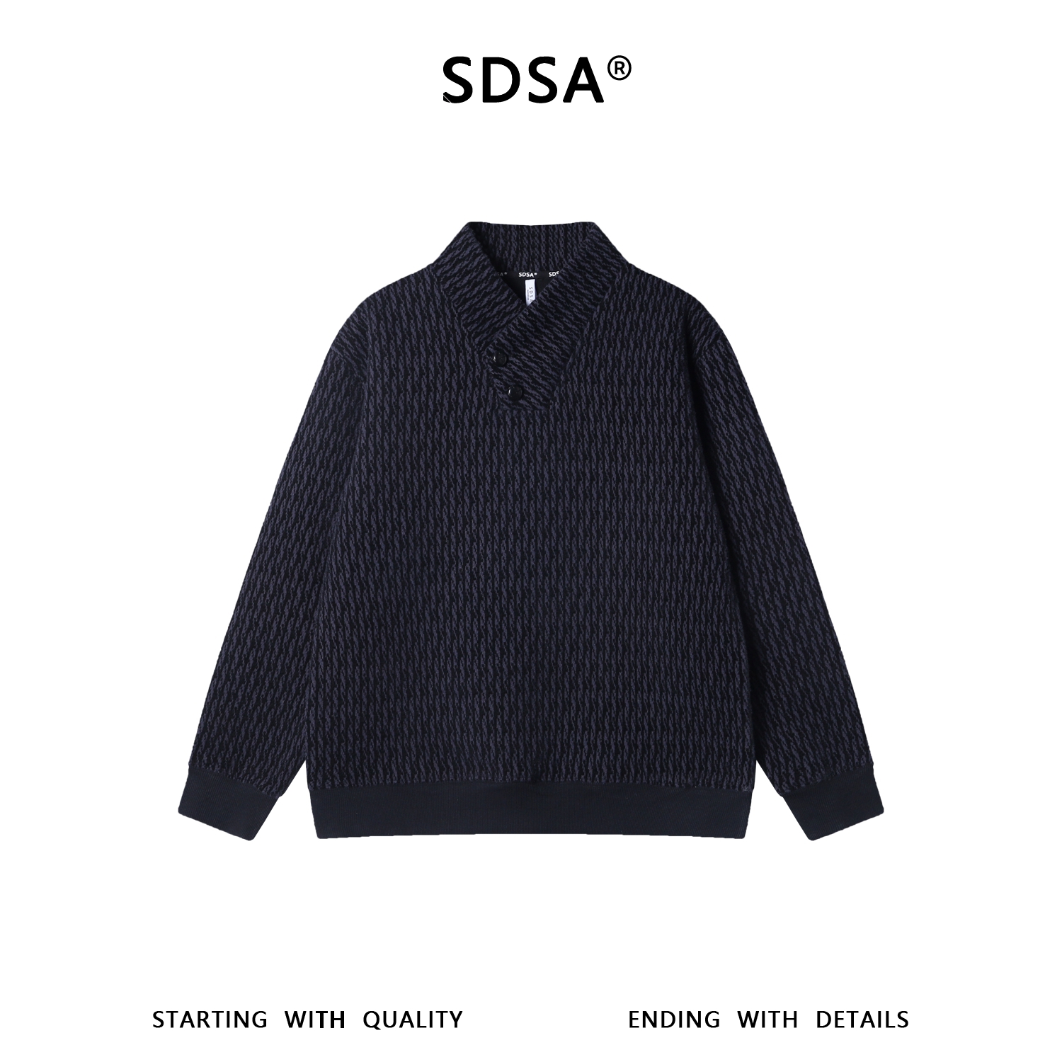 WY1572SDSA男士秋冬新款痞帅男装时尚撞色提花V领卫衣百搭宽松套头上衣