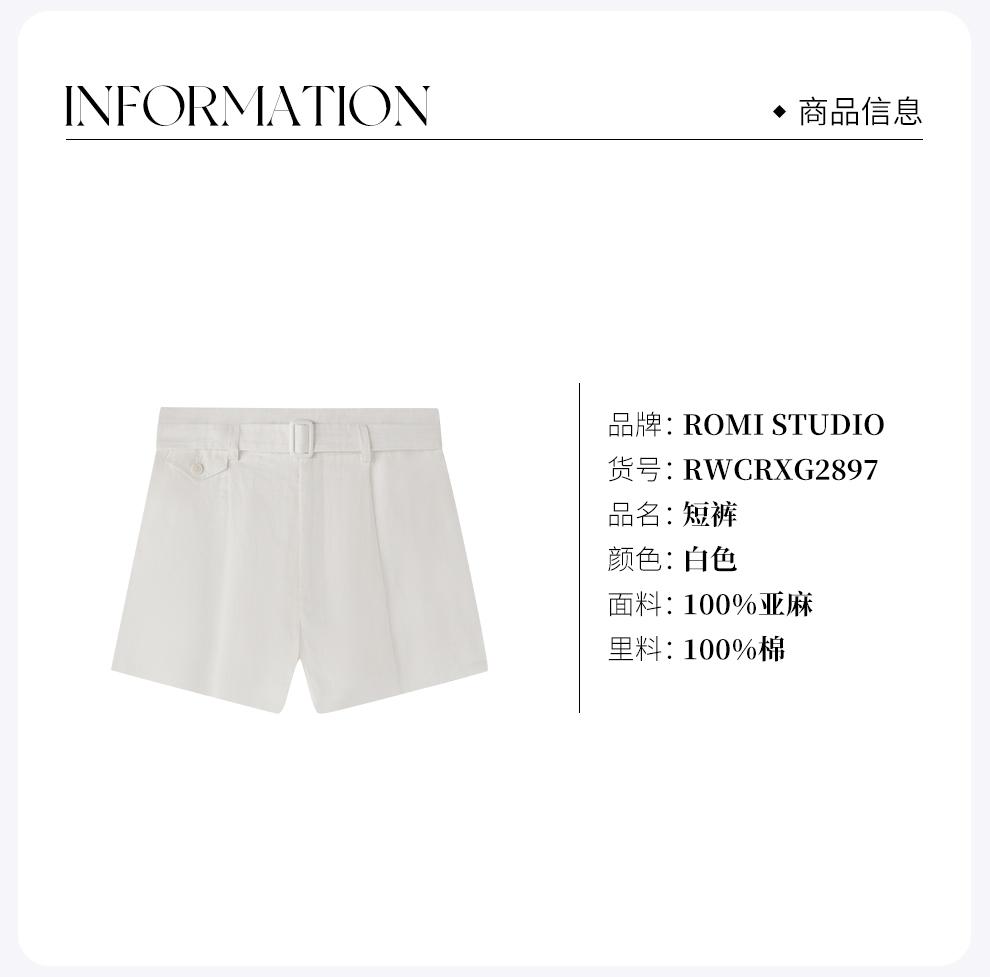 ROMI STUDIO经典老钱宽松剪裁 100%亚麻轻薄休闲短裤RWCRXG2897