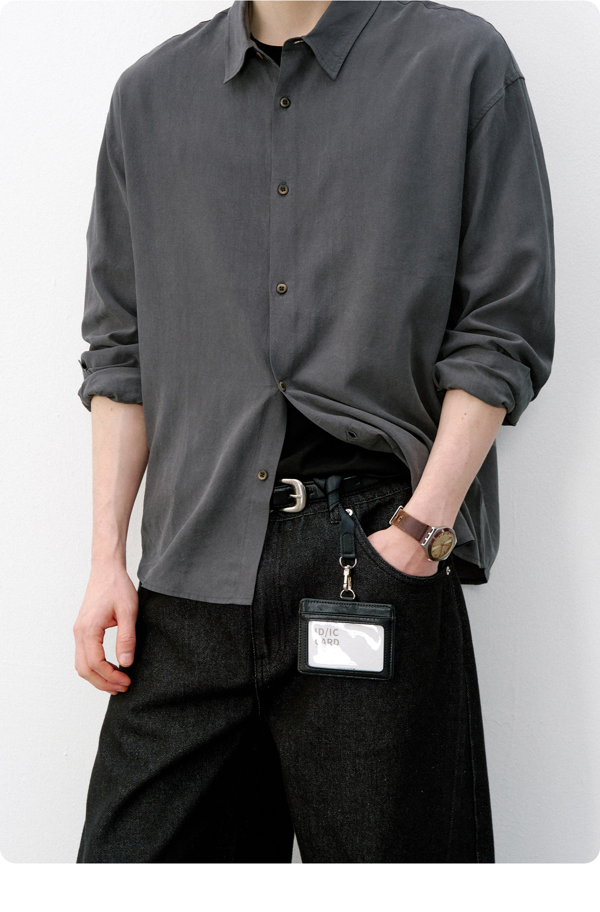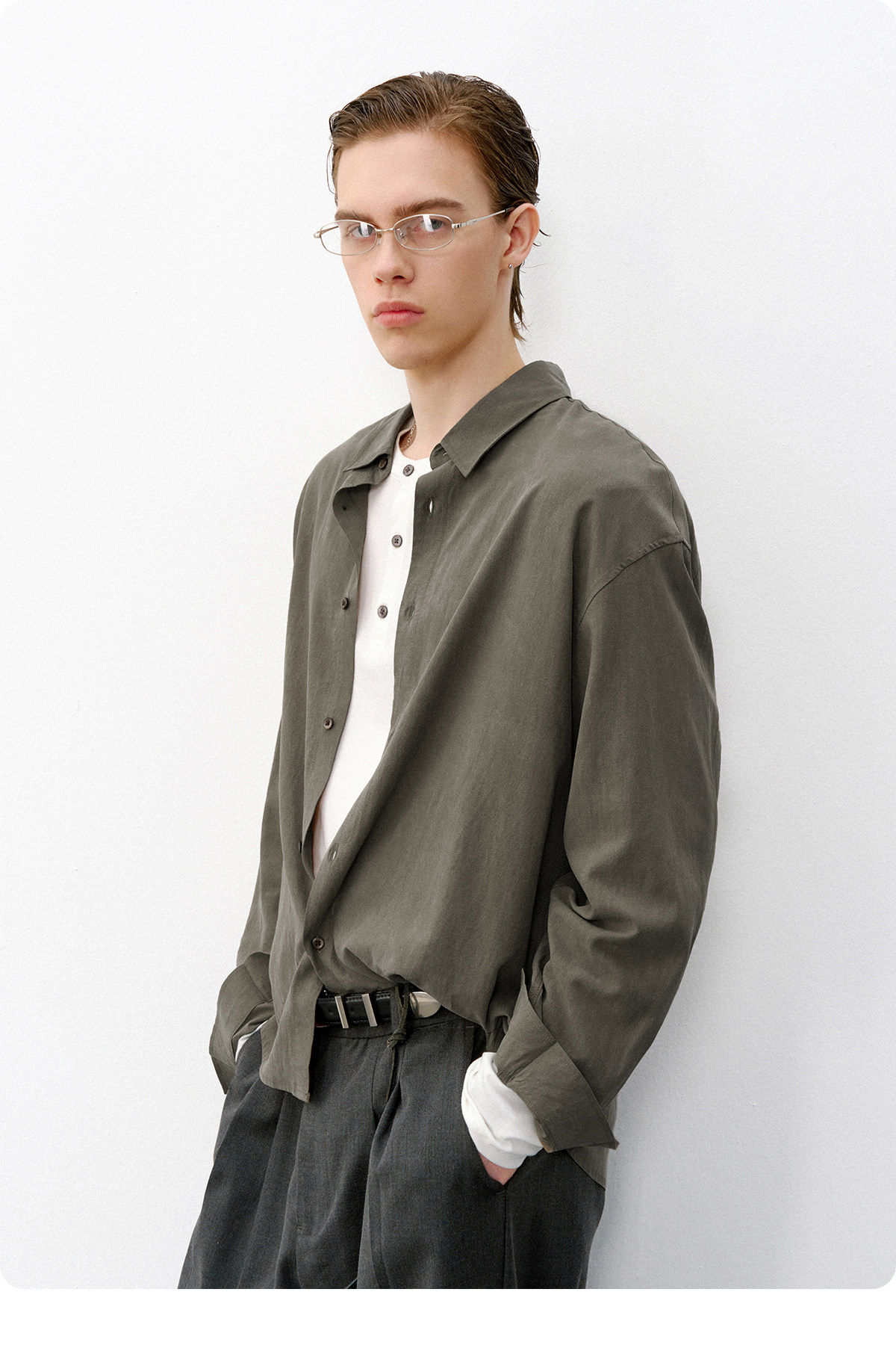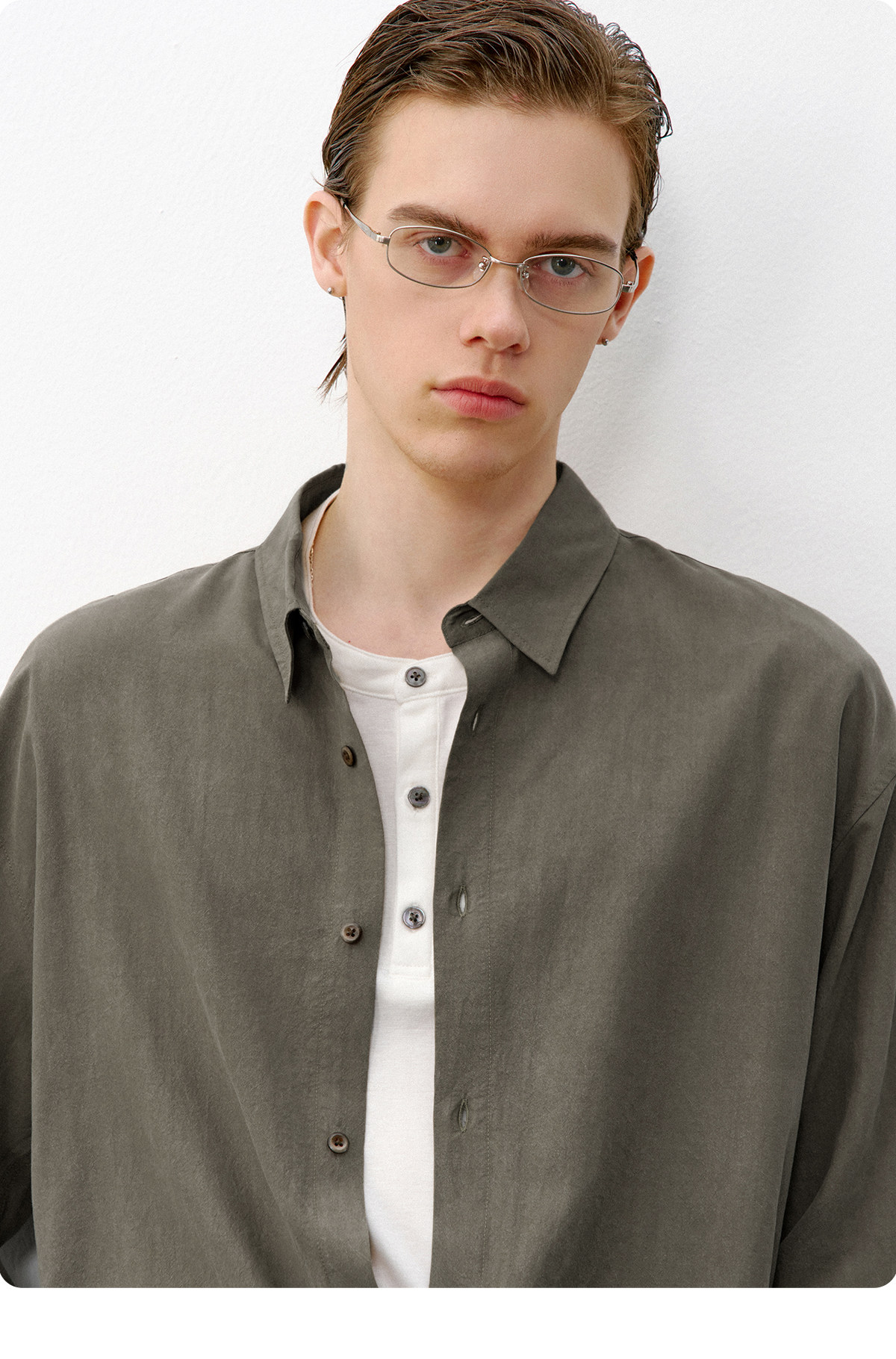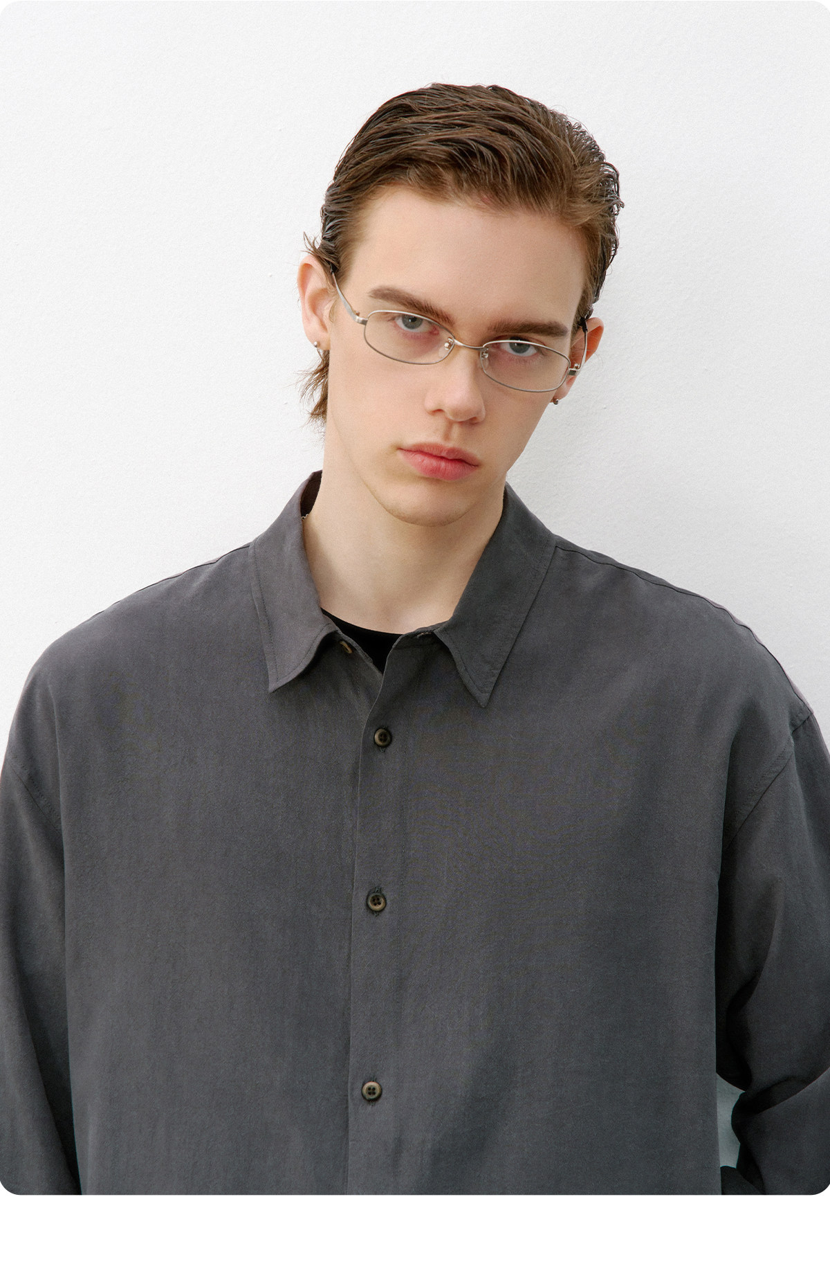 714street 100%莱赛尔透气凉感长袖衬衫男款2026春季复古宽松衬衣