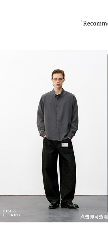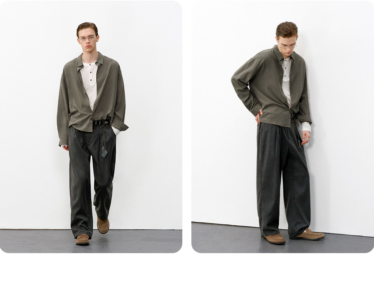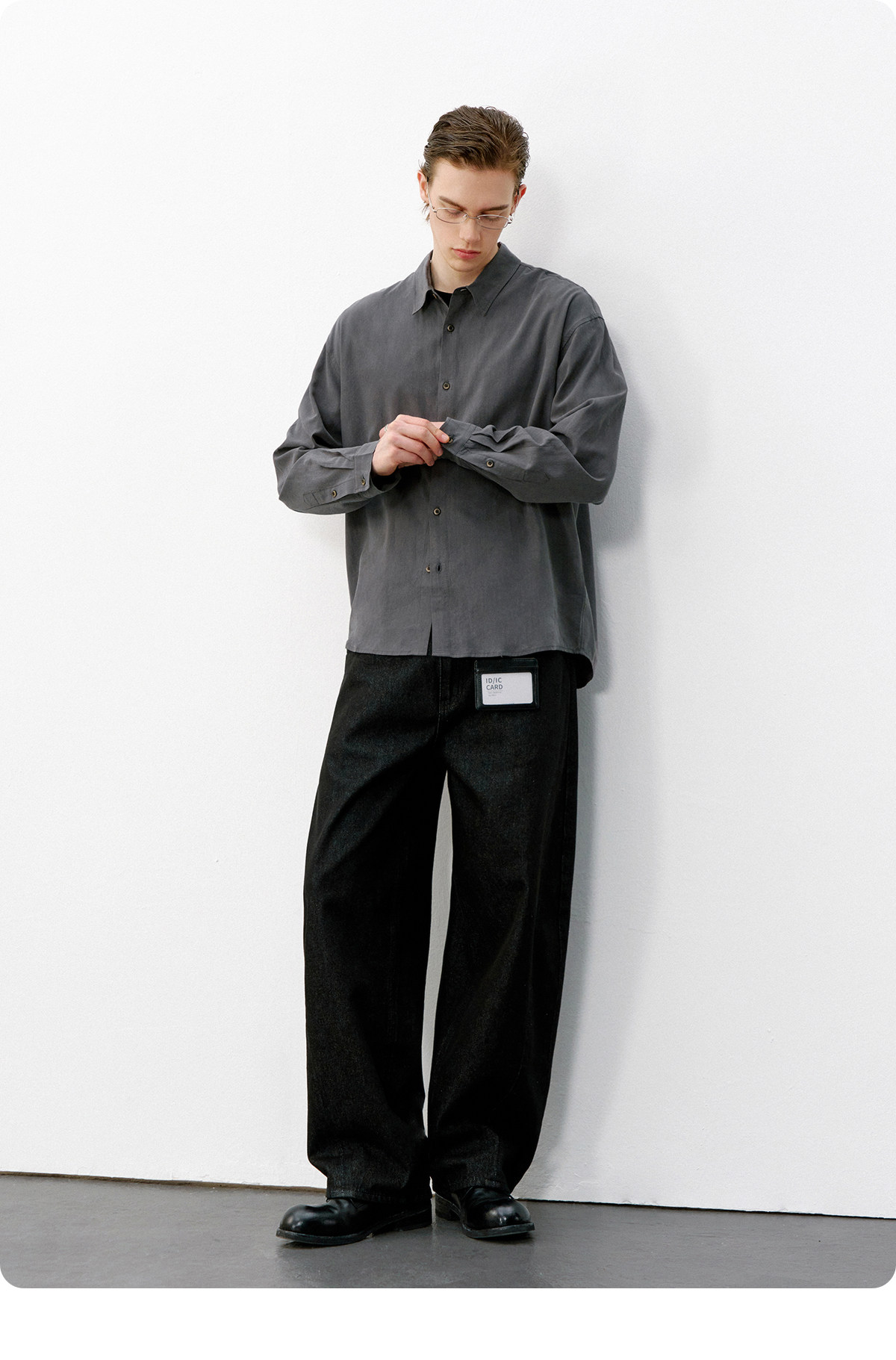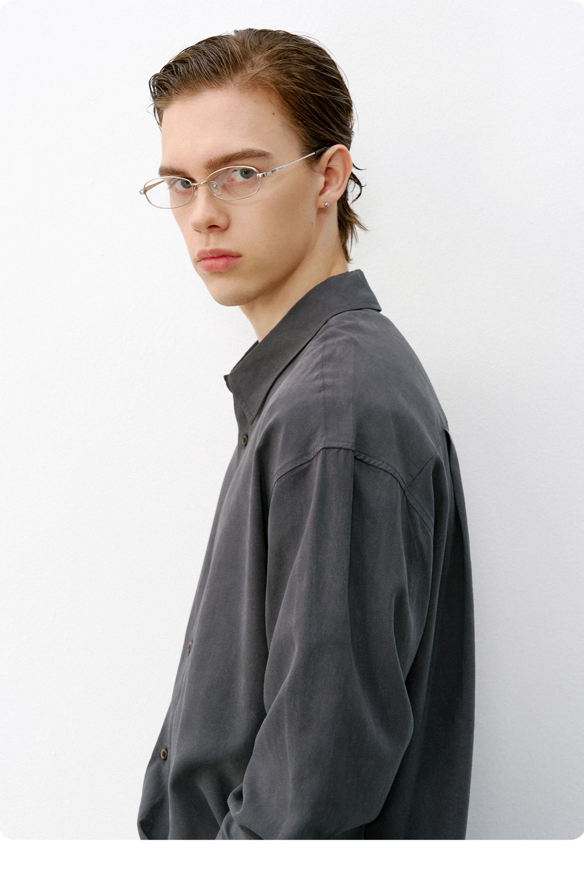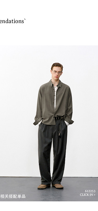714street 100%莱赛尔透气凉感长袖衬衫男款2026春季复古宽松衬衣