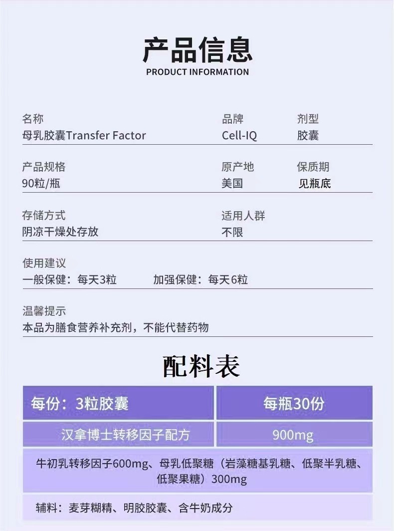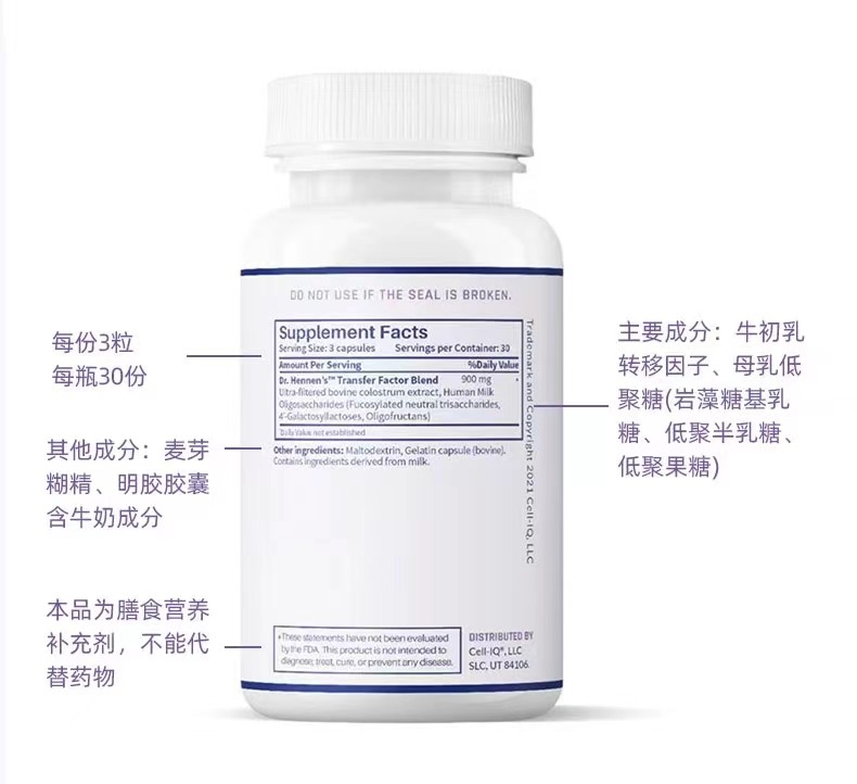 美国Cell-IQ汉拿博士转移因子母乳免疫宝胶囊