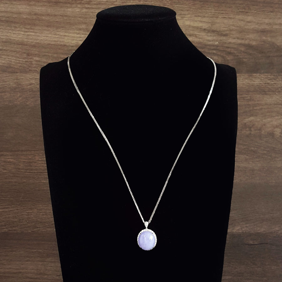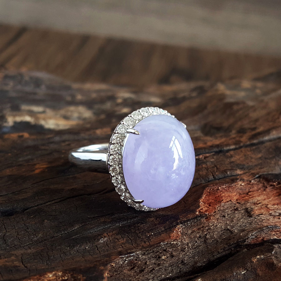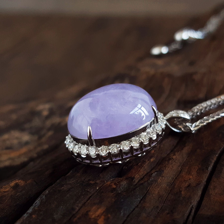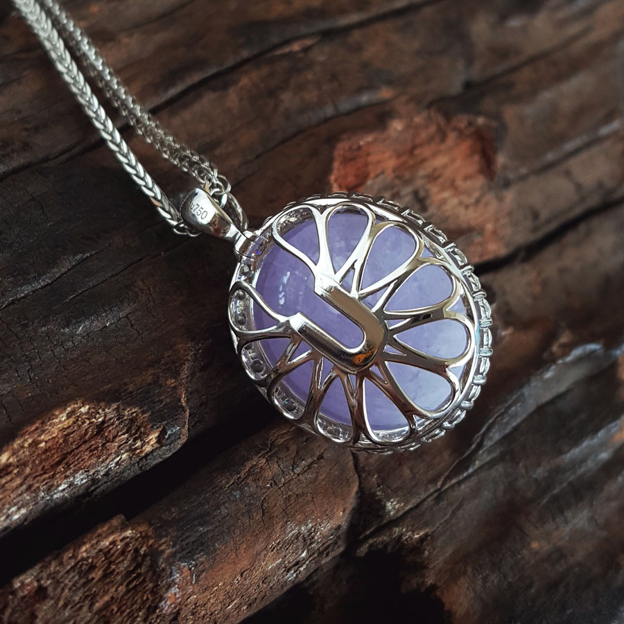 名称 | AU750收藏级白金豪镶钻镶天然细腻糯冰种浓紫紫罗兰蛋面翡翠戒指项链两用款 |