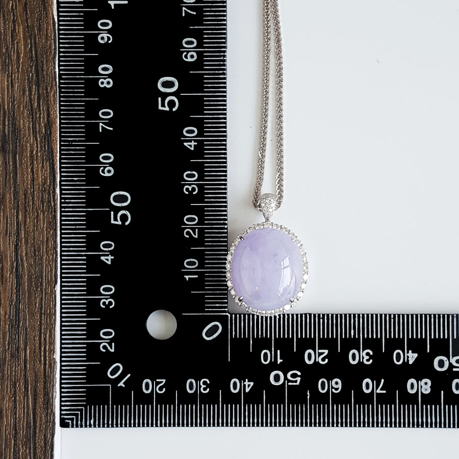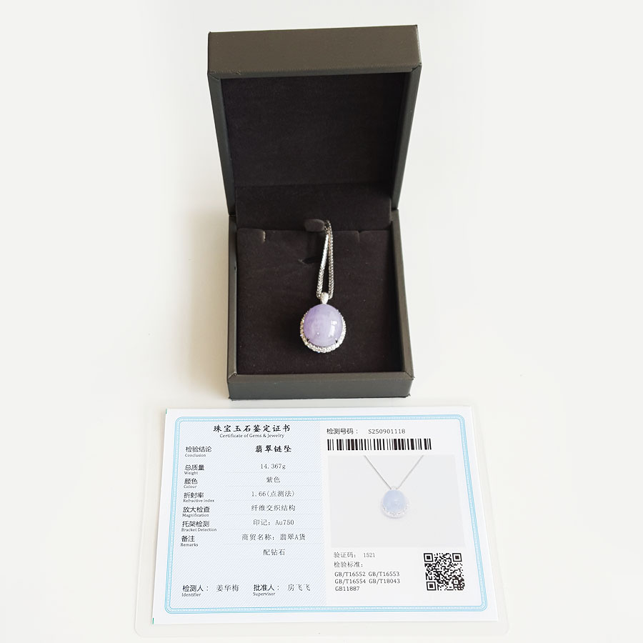 【天然正品】A货翡翠AU750收藏级白金豪镶钻镶天然细腻糯冰种浓紫紫罗兰蛋面翡翠戒指项链两用款18号(戒圈可改)女士230925NJM20现售价:28800