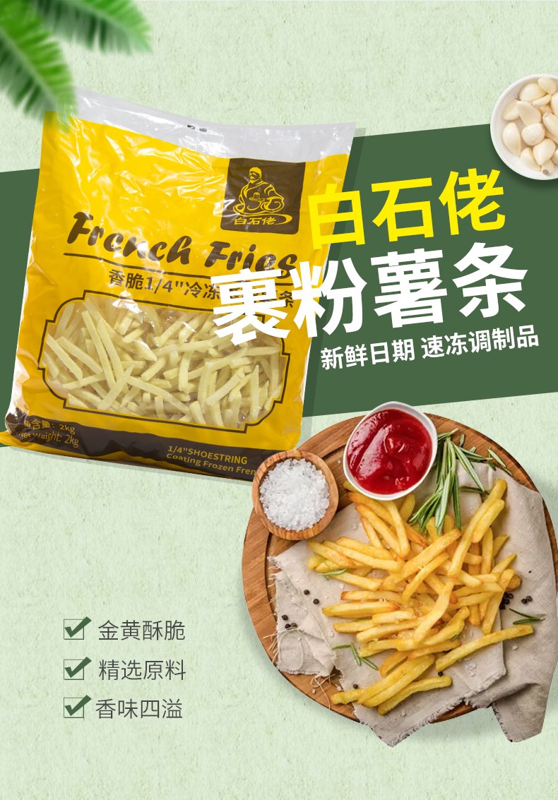 白石佬香脆1/4冷冻裹粉薯条2kg*6 【217】