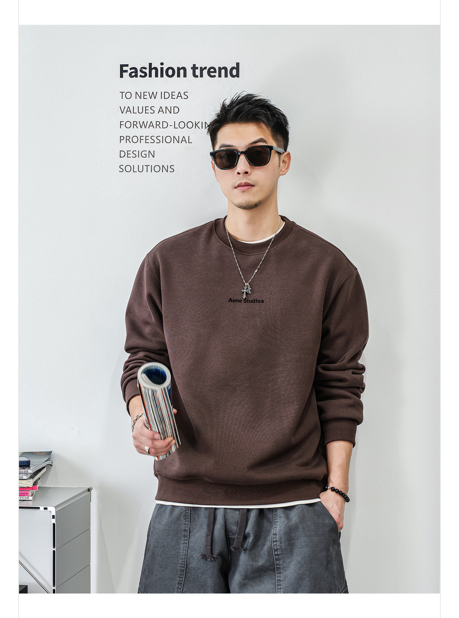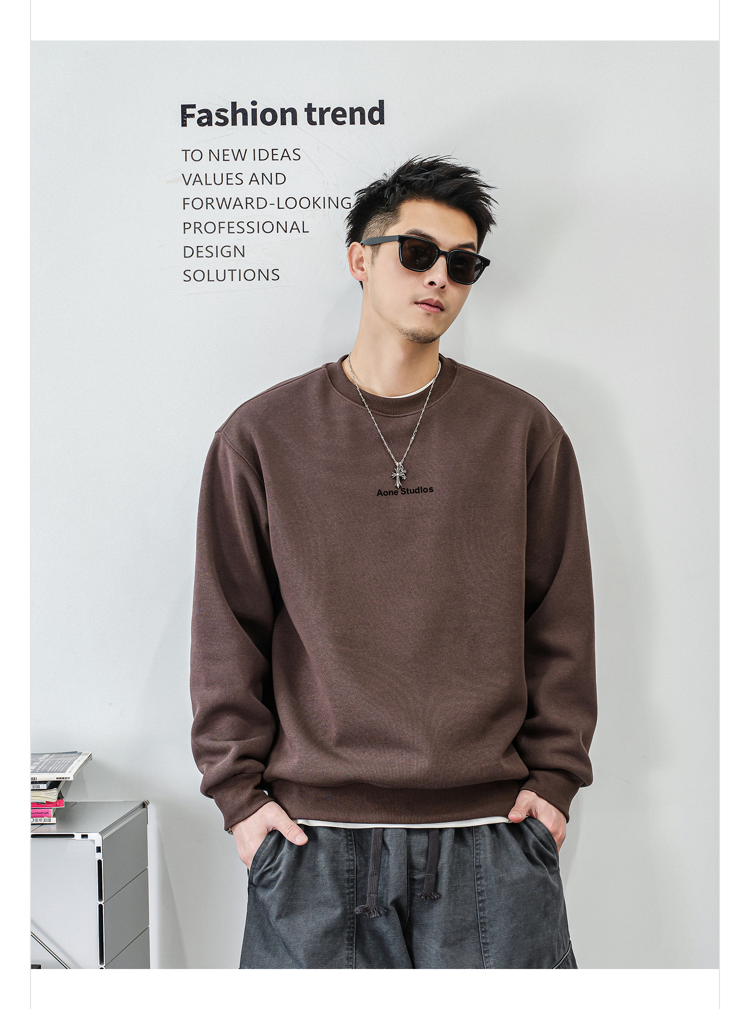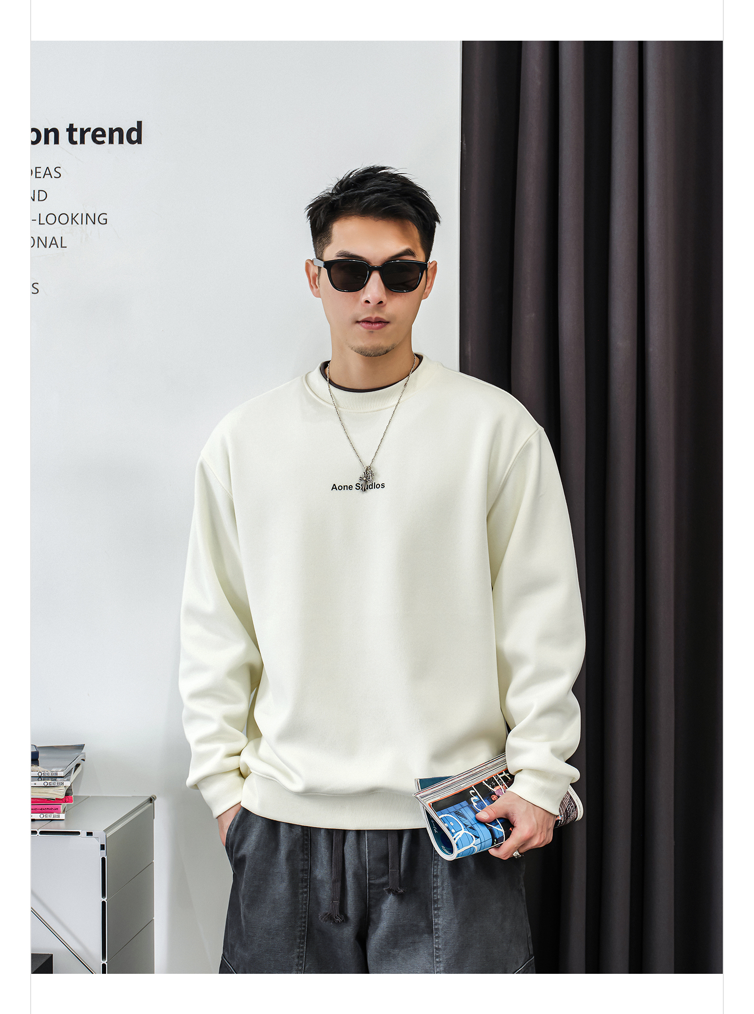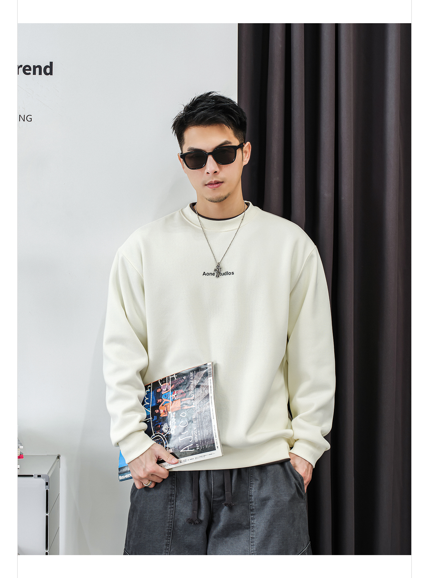 徐太浪【休闲风 简约字母】加绒卫衣男秋冬款套头内搭打底衫上衣