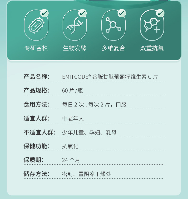 EMITCODE®谷胱甘肽葡萄籽维生素C片单瓶装