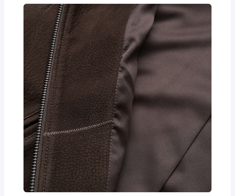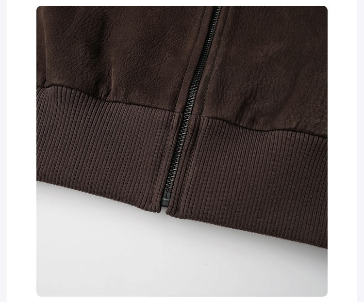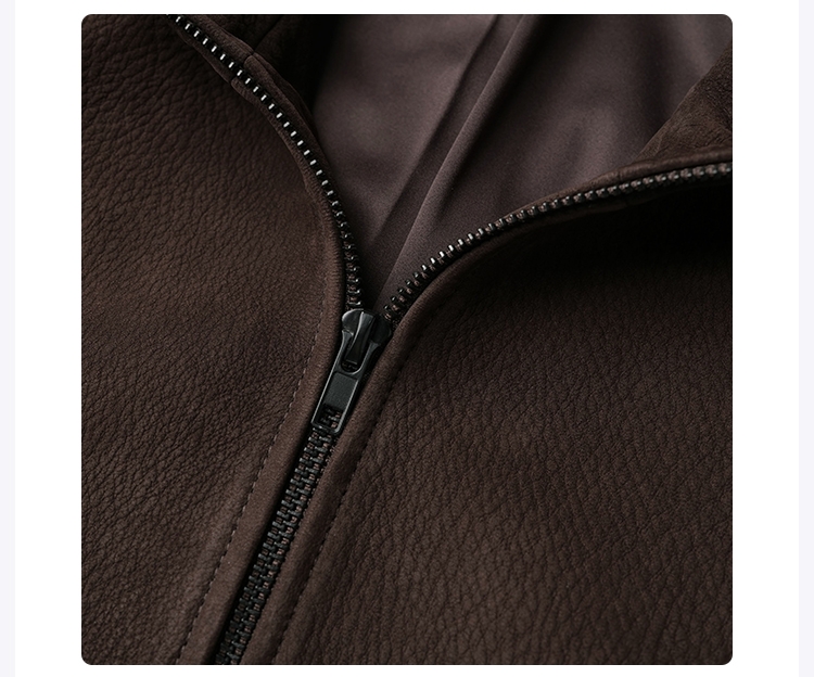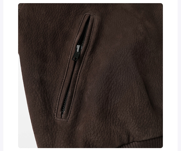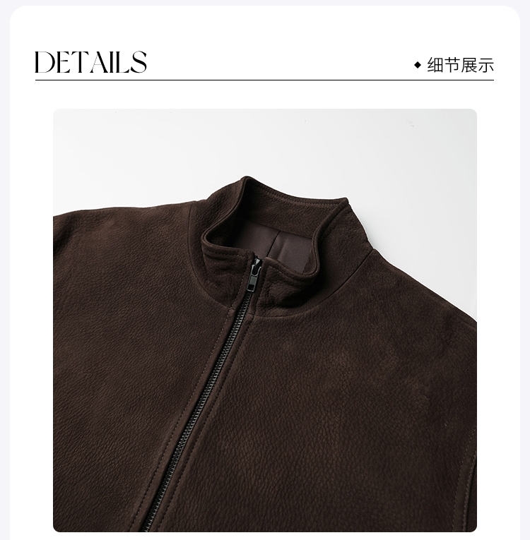 ROMI STUDIO“棕标甄选”轻量山羊正绒自然纹理收腰短皮衣 441P6020