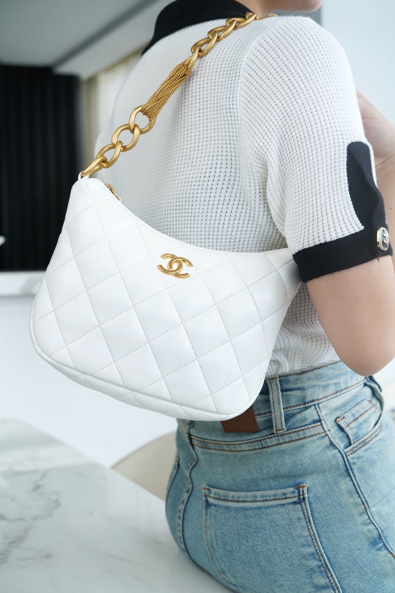 包包整体轻盈不厚重,独特又复古的五金链美到极致,工艺感极强,经典的配色?菱格,流苏控可以冲,吸睛力我给??分!