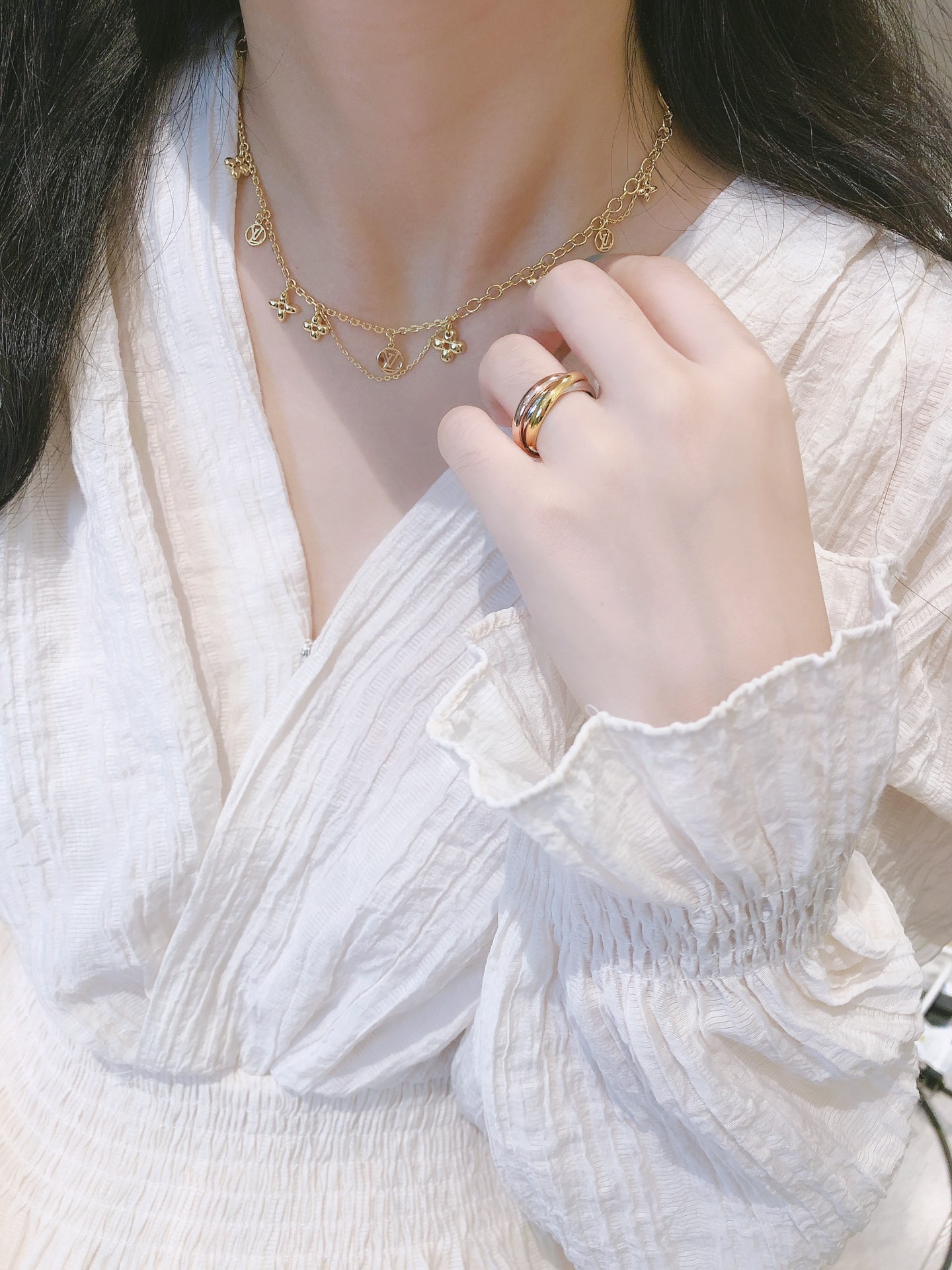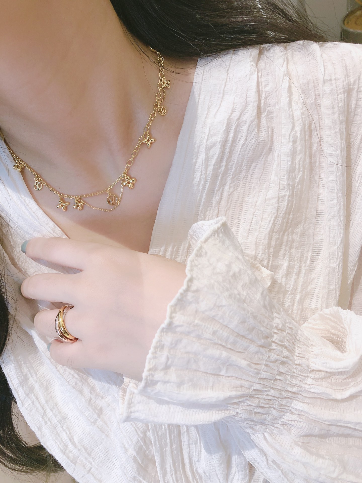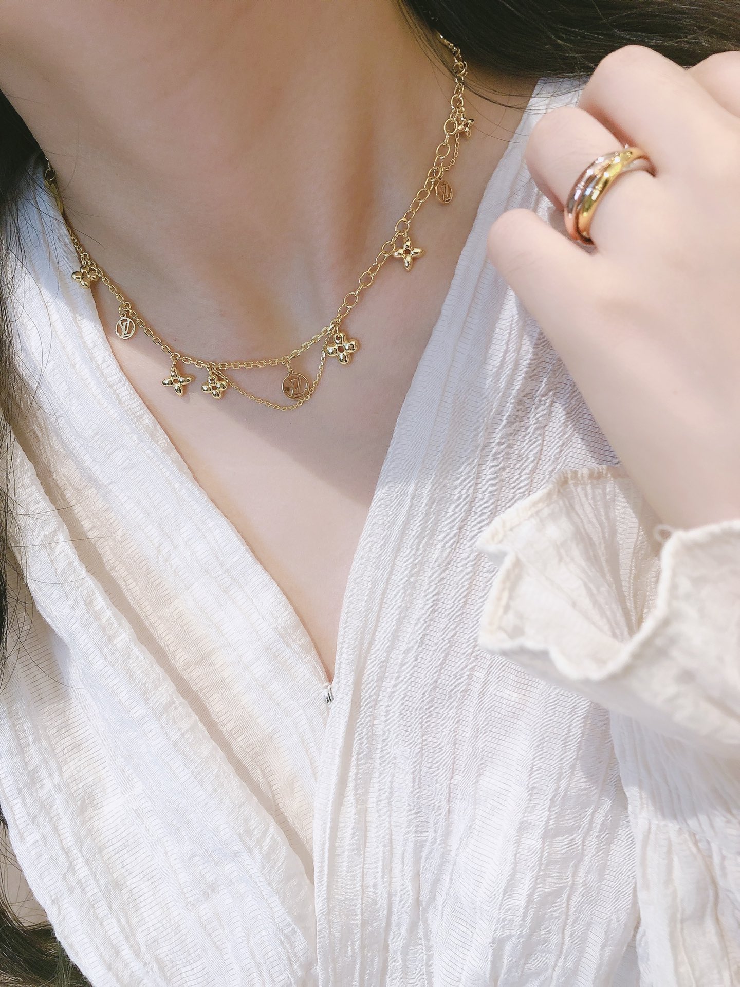 Blooming系列项链,外层厚镀18K真金表层!整条手链有精美小吊坠,一眼种草,瞬间被俘获!此款风格优美的手链将成为时尚而优雅的腕间配饰!设计中融入Monogram花卉与圆形lv标志元素,经典而精致,没有钻石的闪耀,一样抵挡不住它的美丽? 每个小吊饰都有优美的弯曲曲面,立体感和质感都非常棒,戴起来刚刚好的温柔,一点不浮夸!金色显白