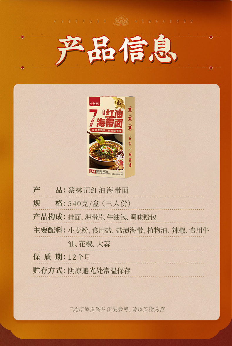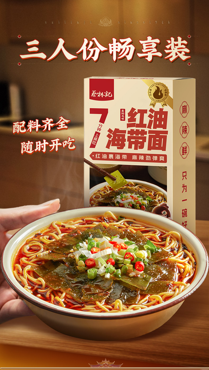 蔡林记红油海带面三人份540g汤面带料包早餐速食 湖北直发