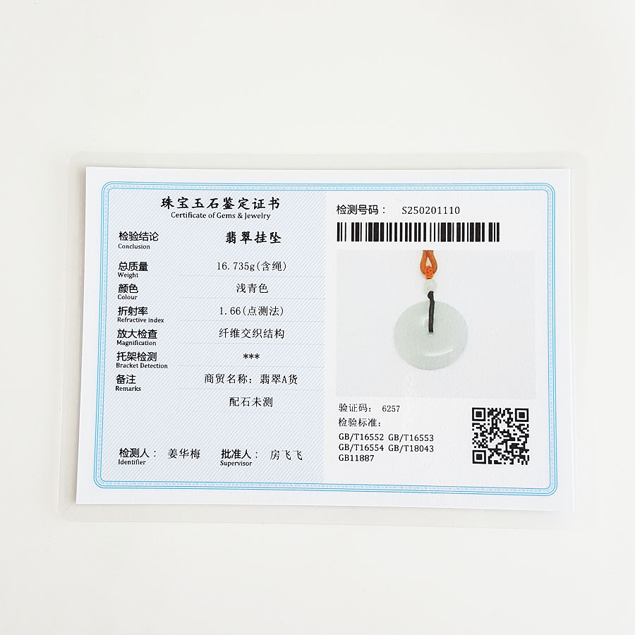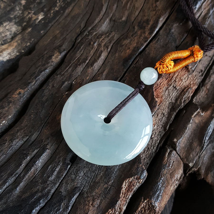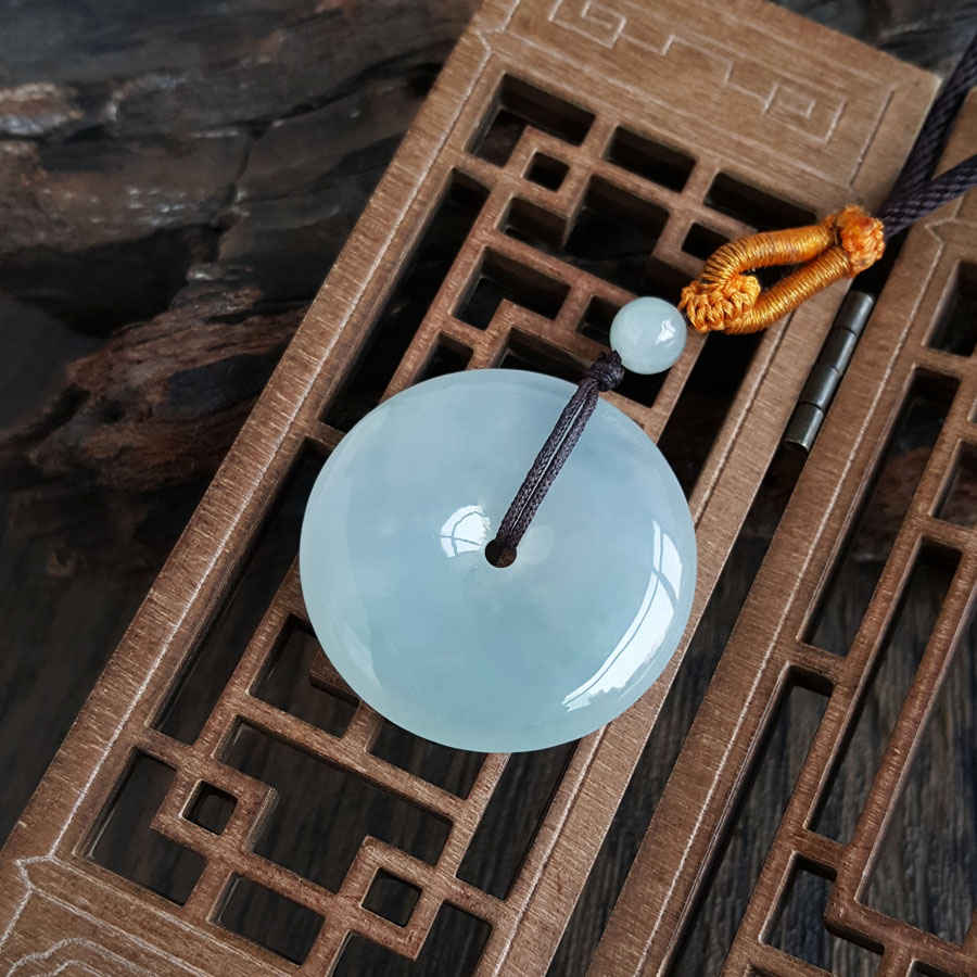 【天然正品】天然精品细腻无纹裂冰种平安扣翡翠吊坠项链中性款现售价:4880!270225AH33