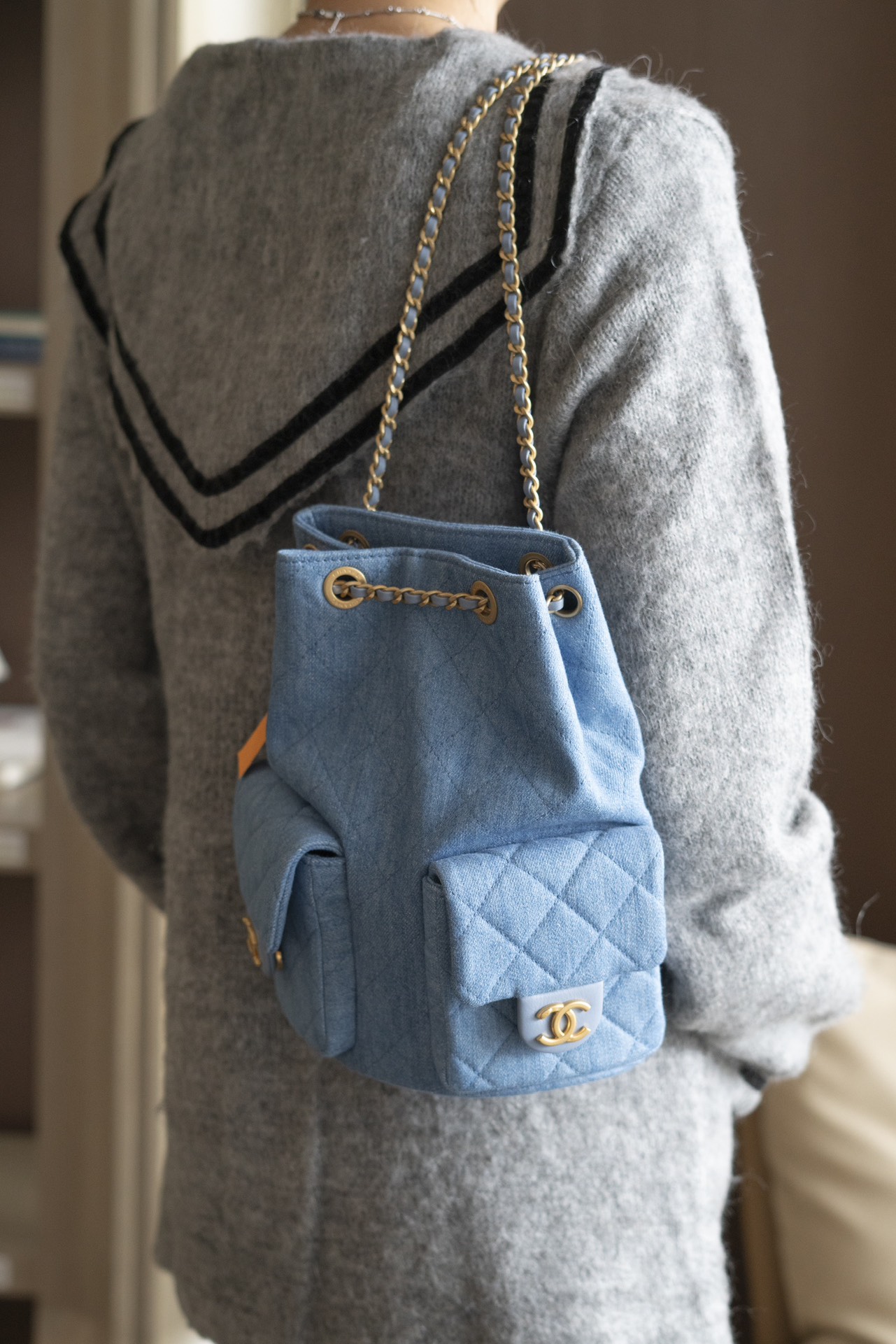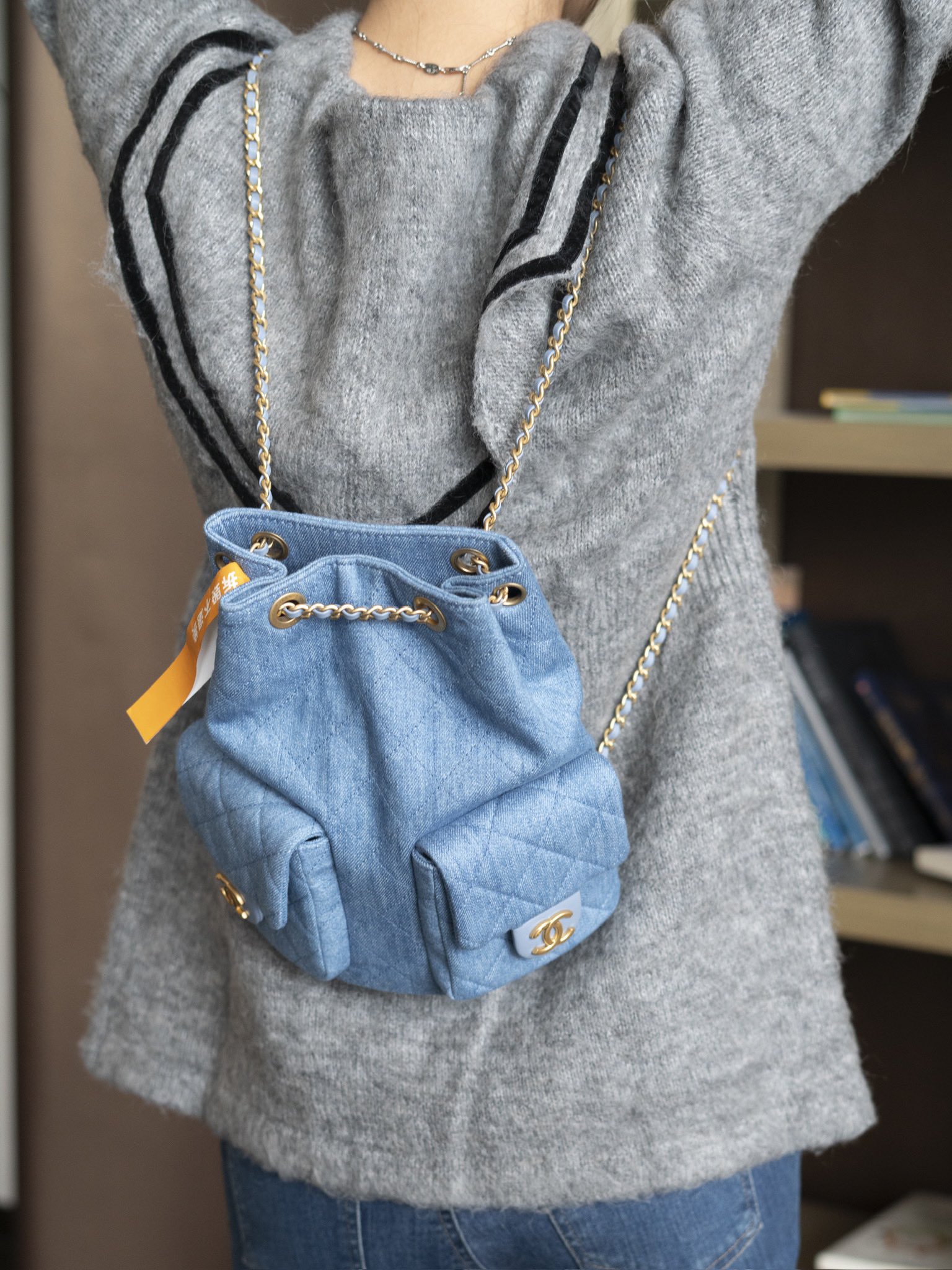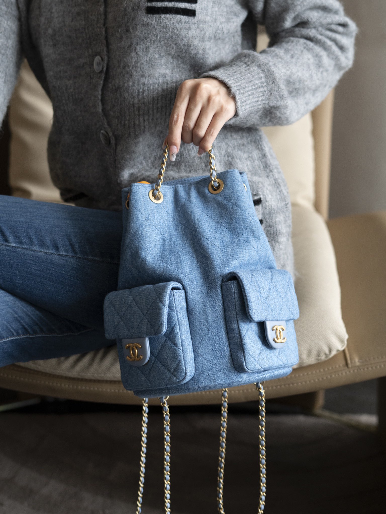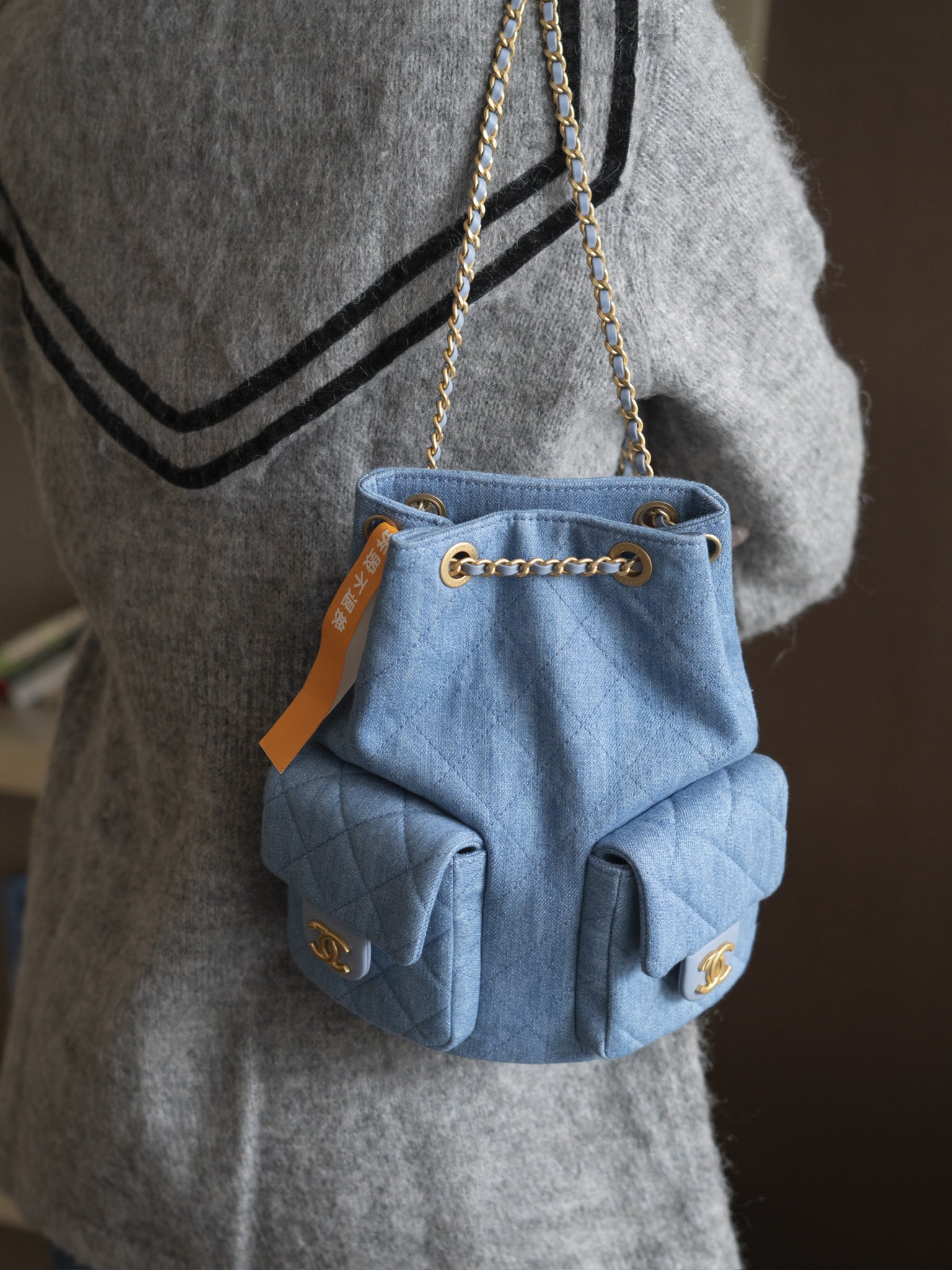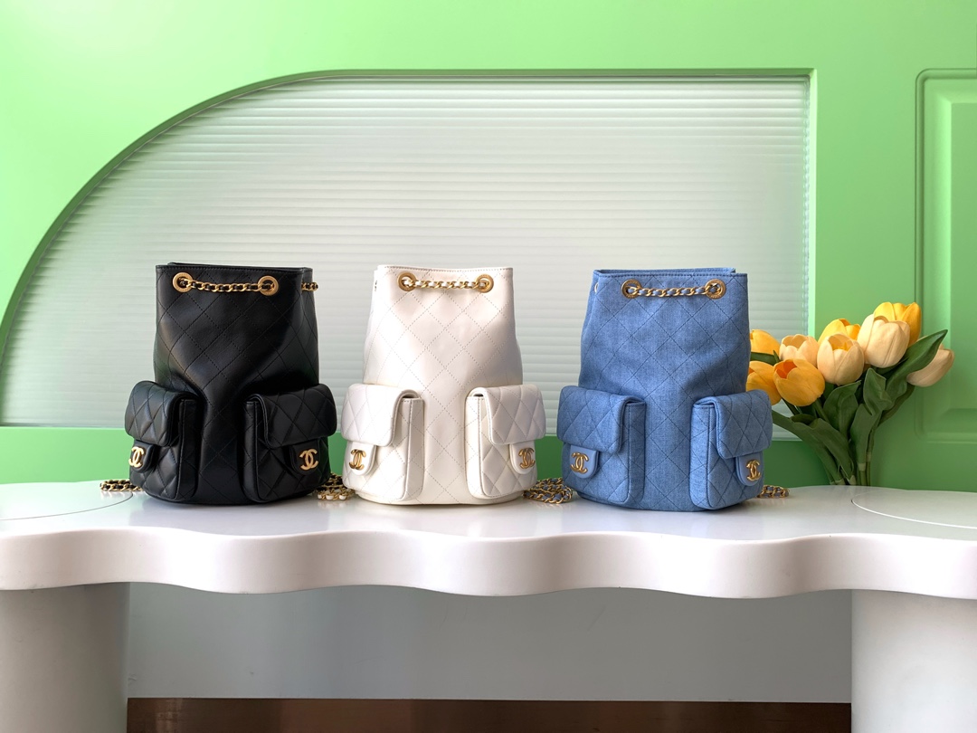 OHANEL 25C早春度假系列 丹宁牛仔 双肩背包肩带依然皮穿链风格🉑️手提🉑️单间🉑️双肩!