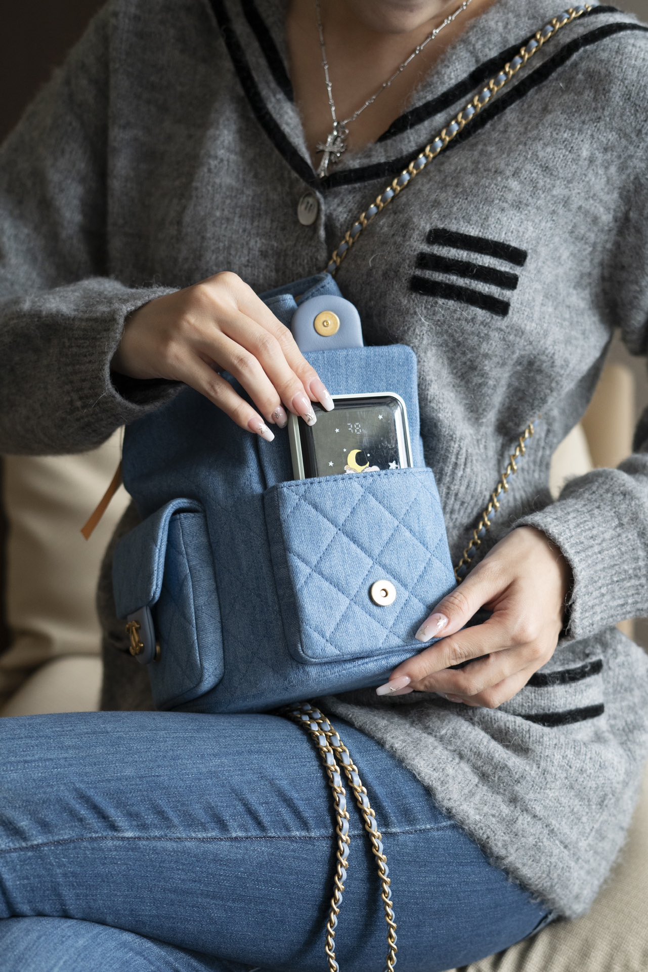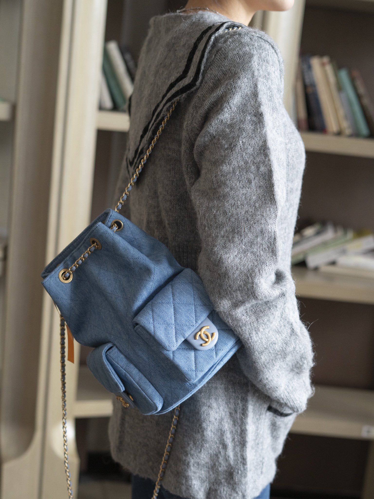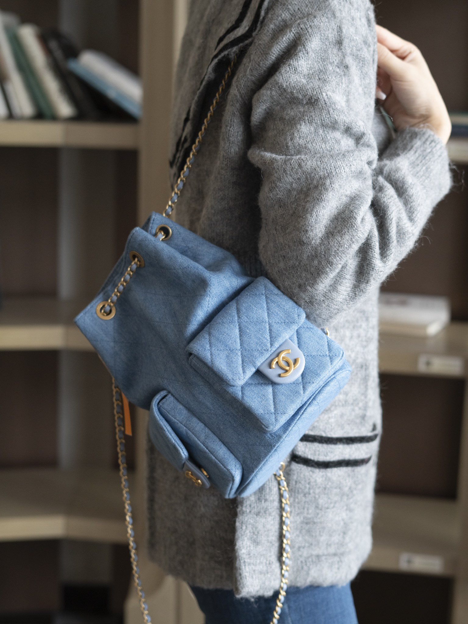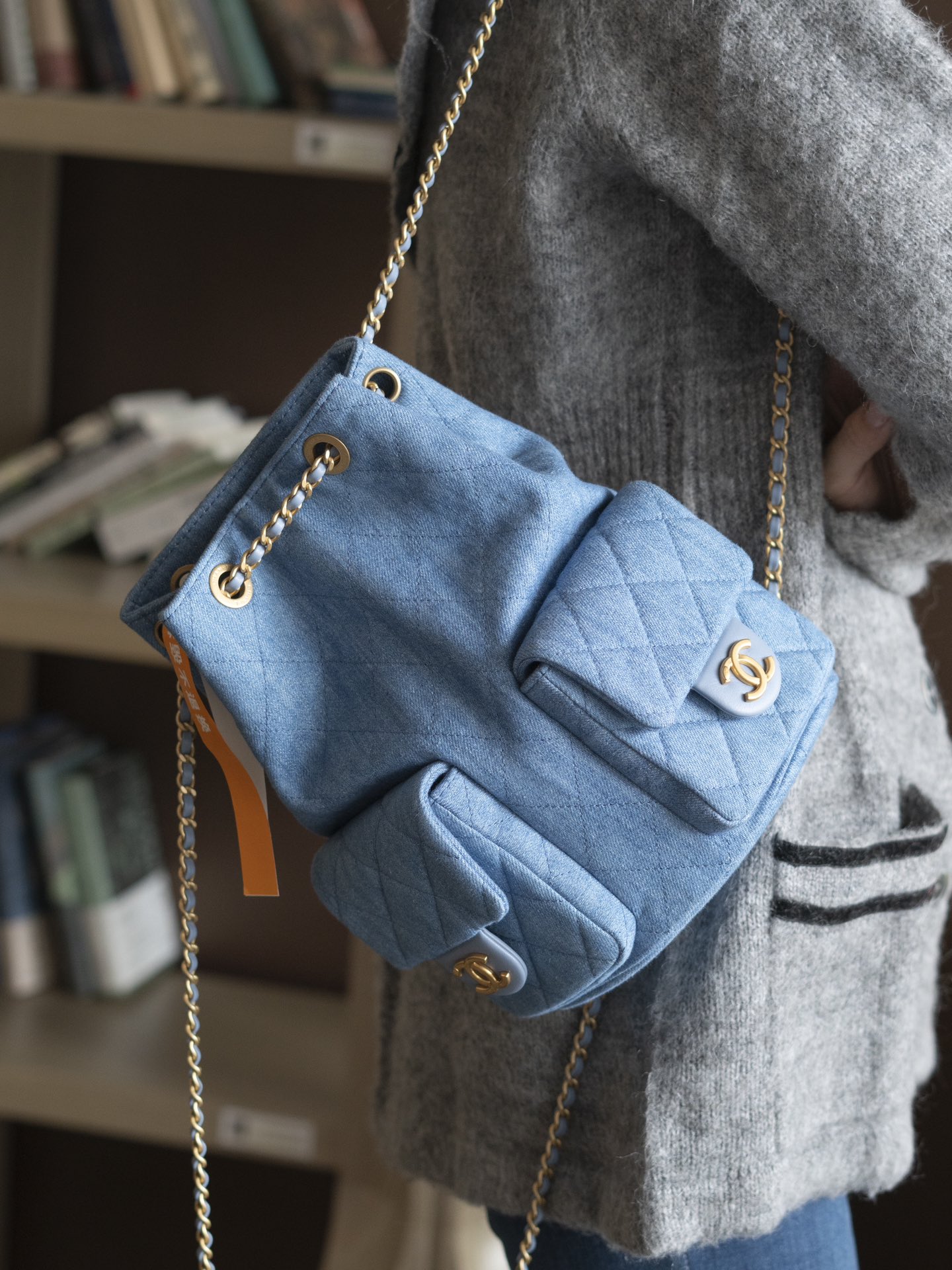 OHANEL 25C早春度假系列 丹宁牛仔 双肩背包肩带依然皮穿链风格🉑️手提🉑️单间🉑️双肩!
