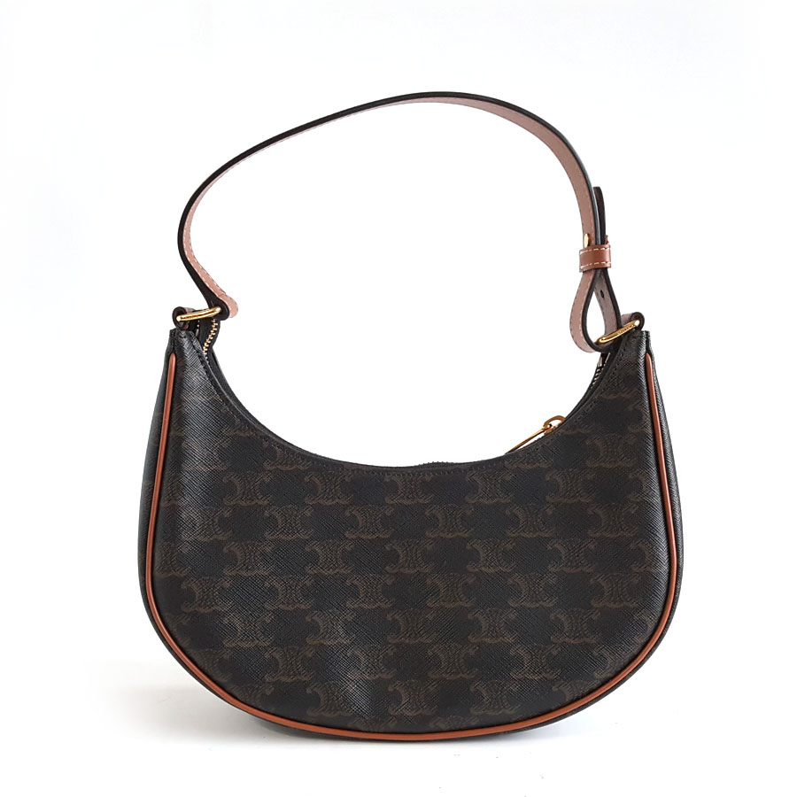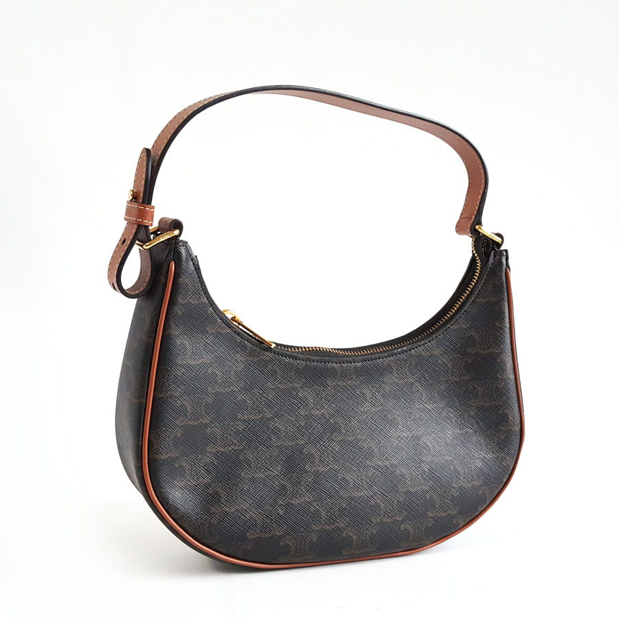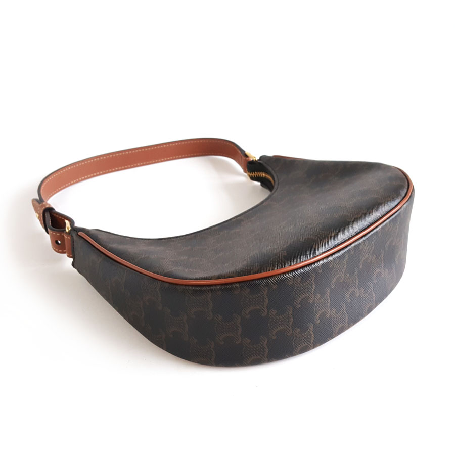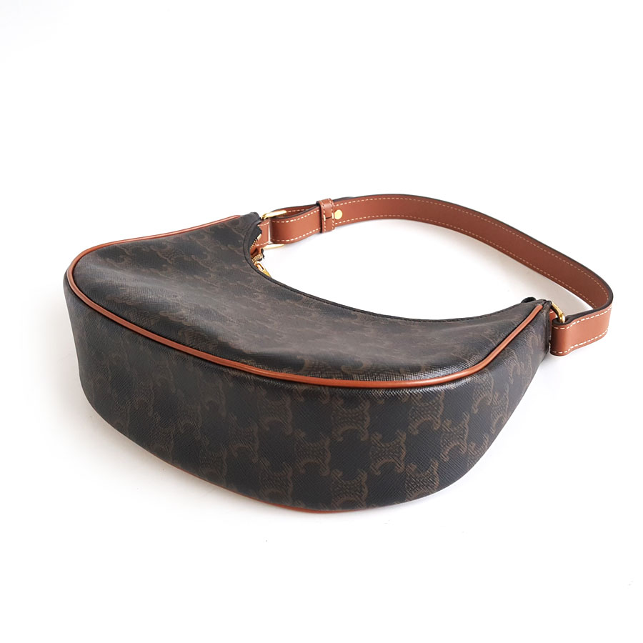 【95新】CELINE思琳193952BZJ.04LU棕色凯旋门老花AVA豌豆包腋下包单肩包女士270326TJ17