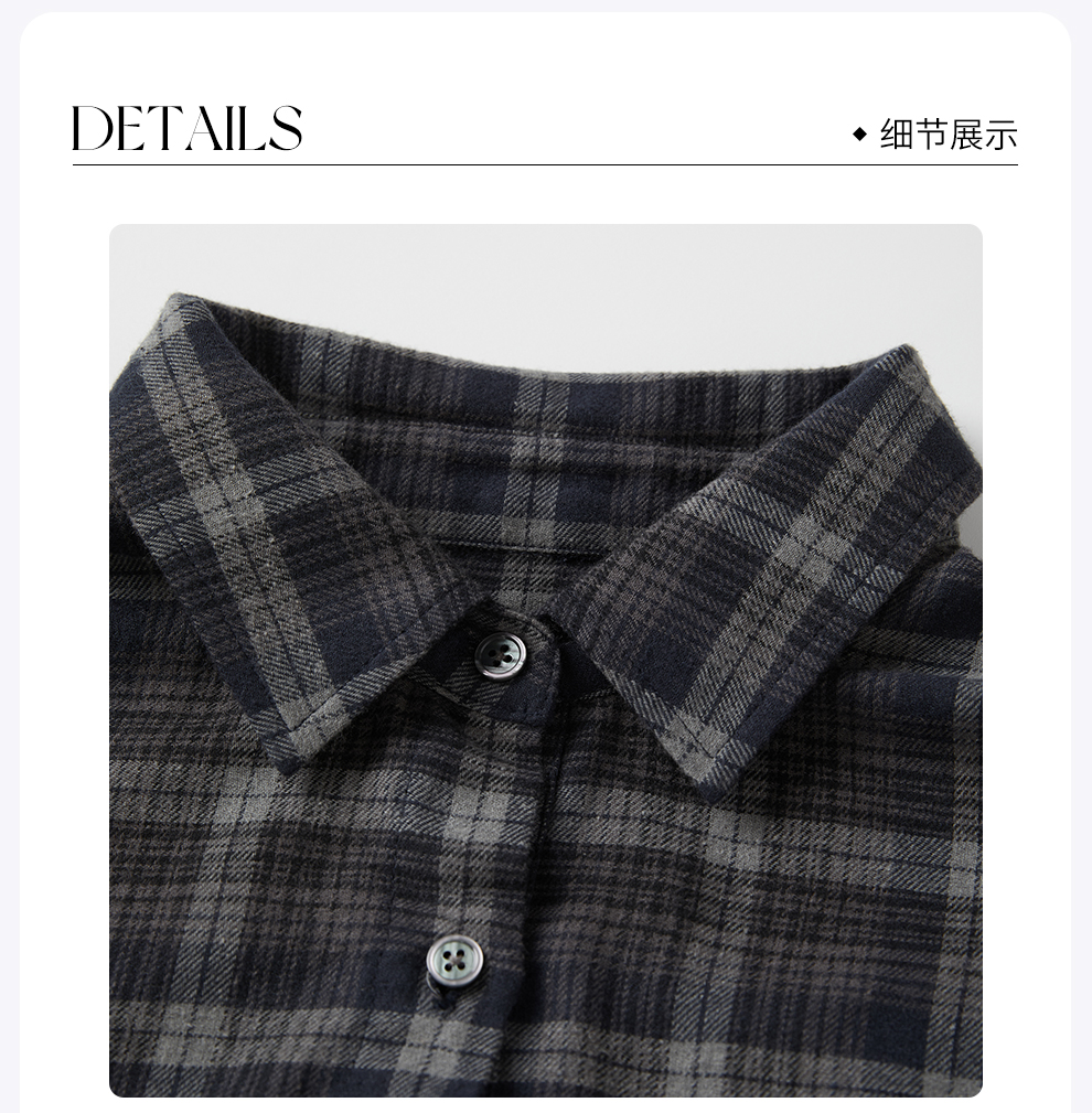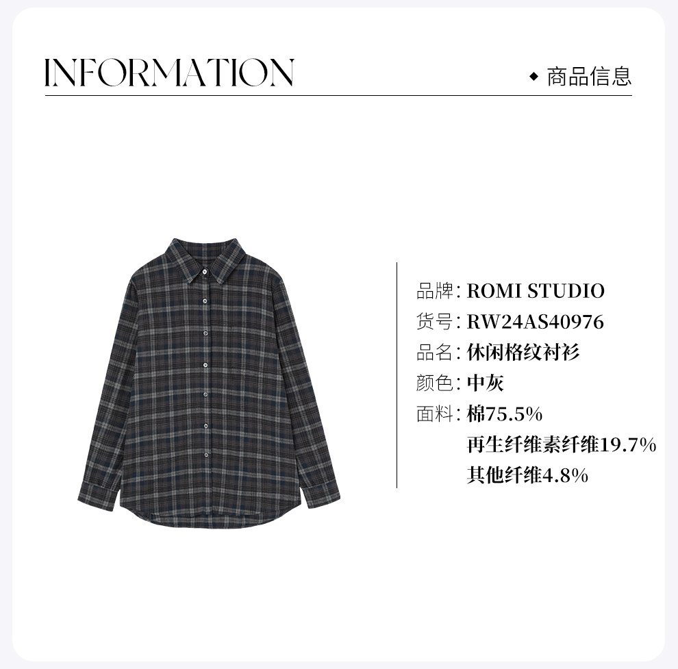 ROMI STUDIO“美式复古”高支棉混纺翻领宽松格纹衬衣 RW24AS40976