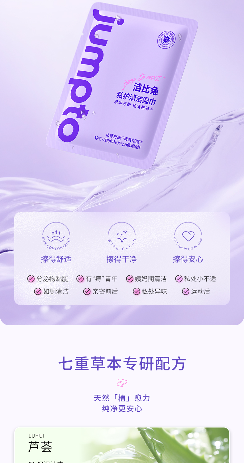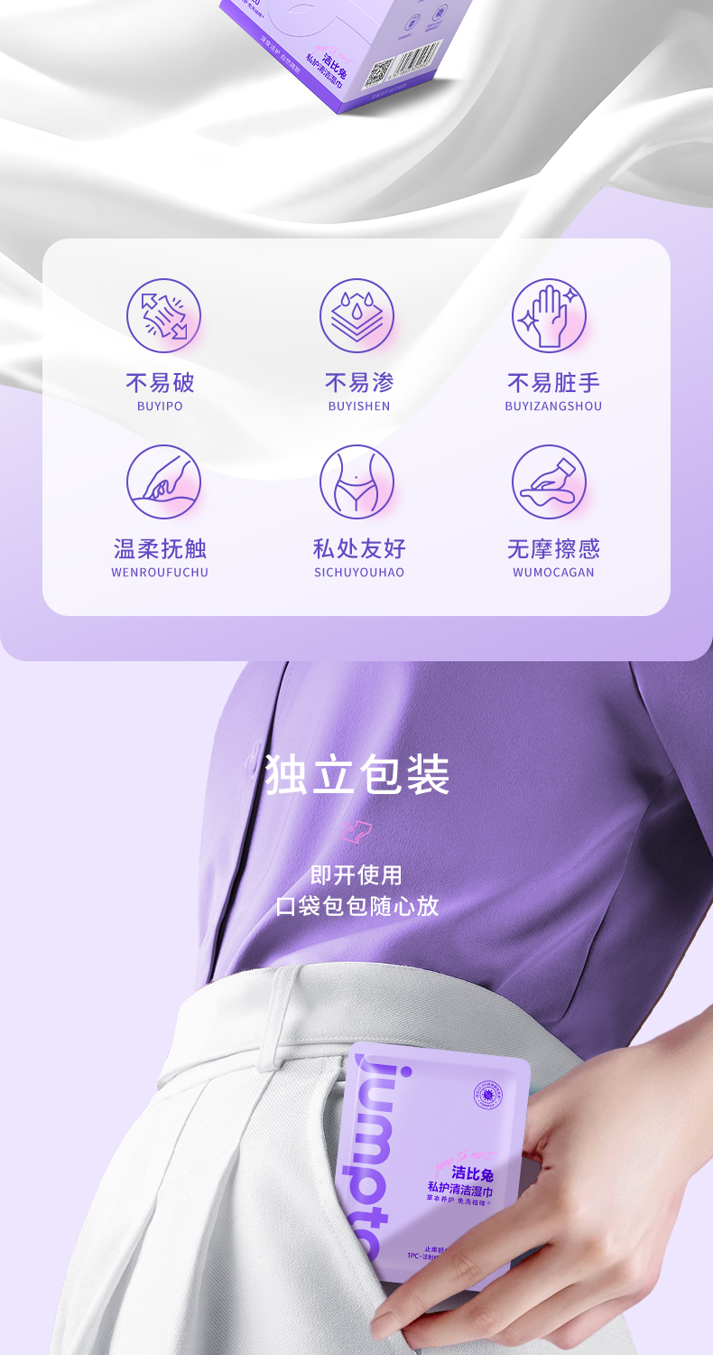 洁比兔女性私护清洁湿巾独立包装便携式亲密前后湿巾