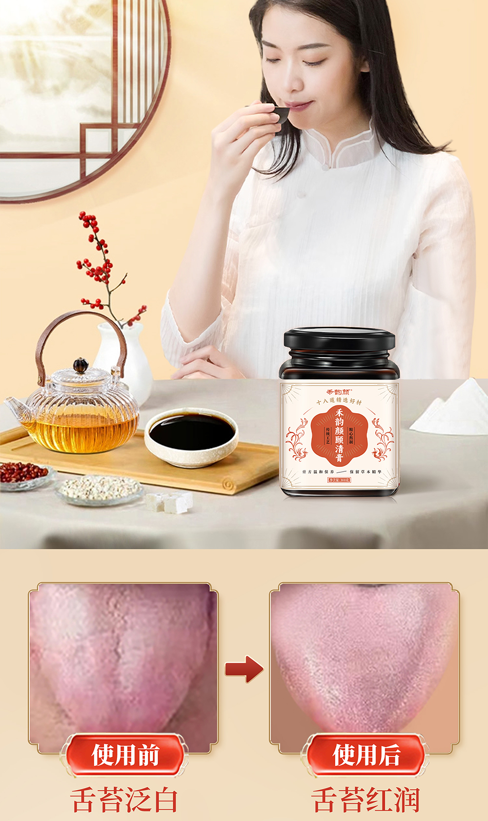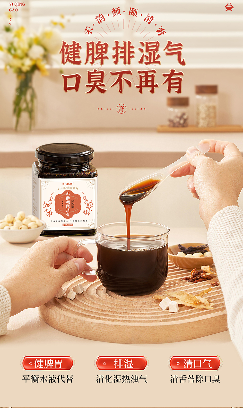 禾韵颜颐清膏官方正品排湿气口臭口气舌苔白厚齿痕舌调理脾胃虚寒