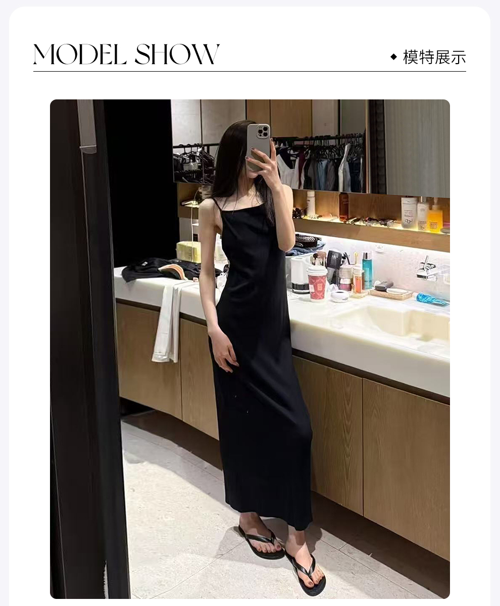 ROMI STUDIO“简约优雅”极简一字领弹力修身吊带连衣裙 RWCSLD2369