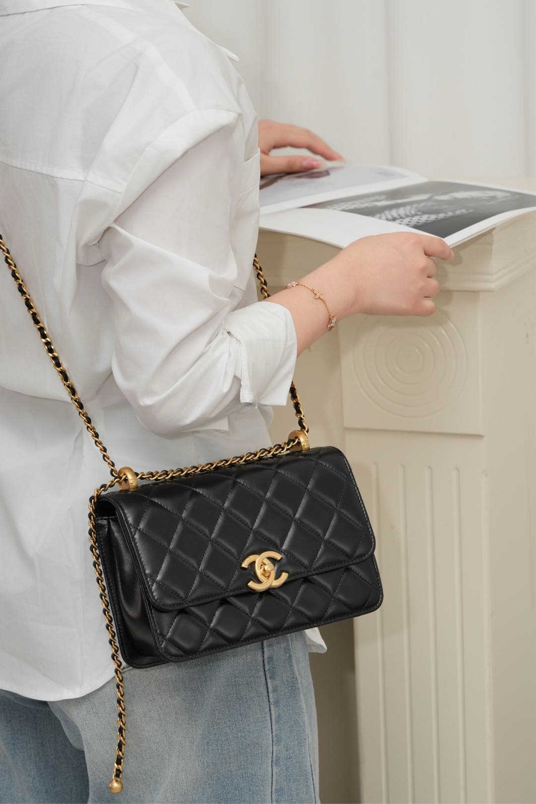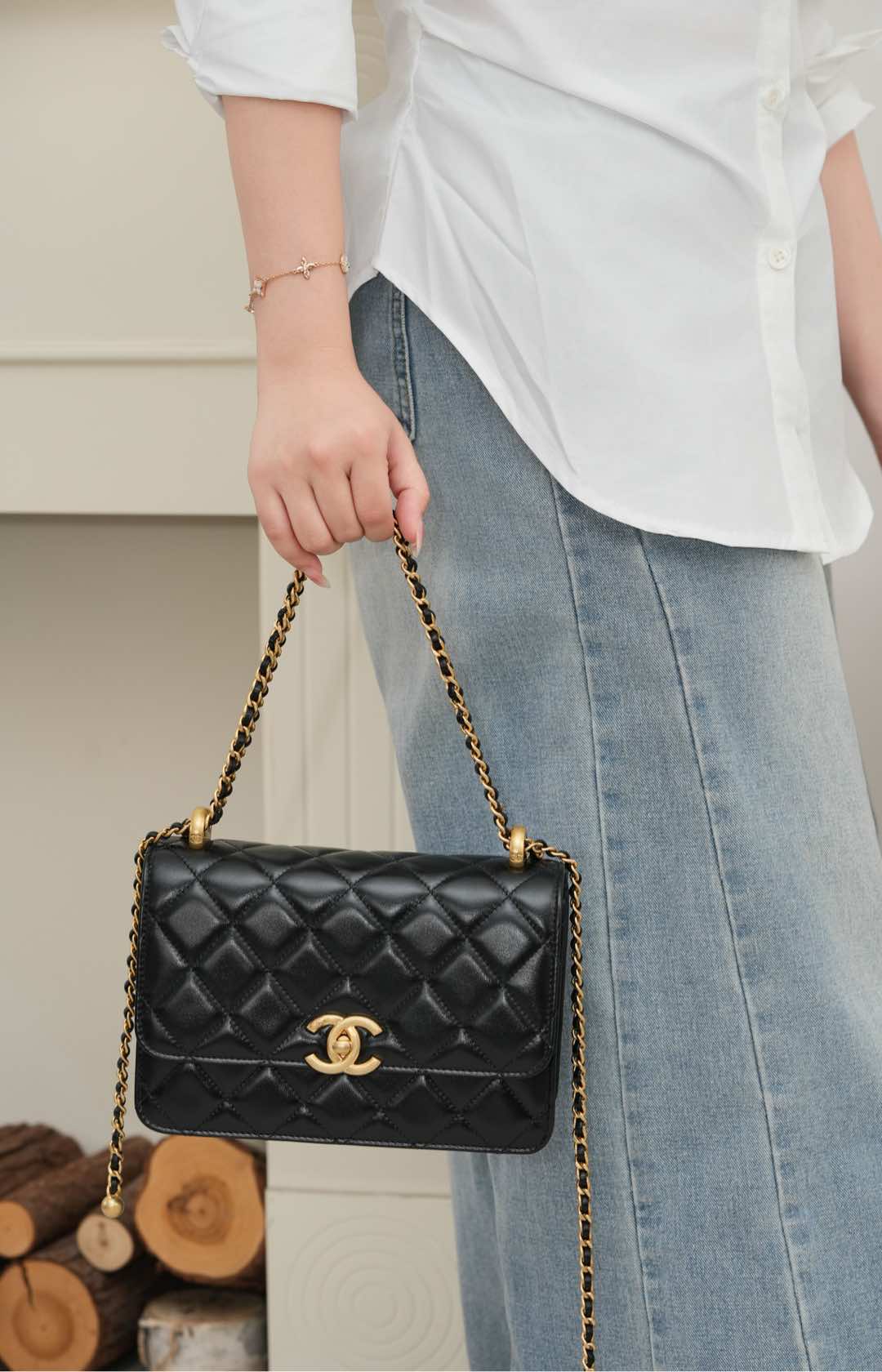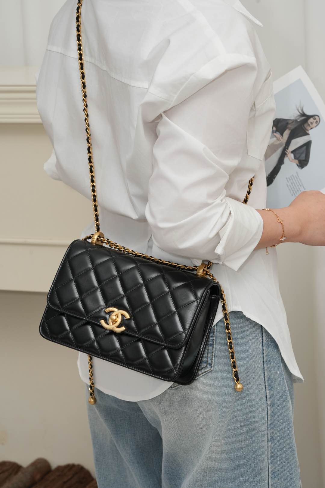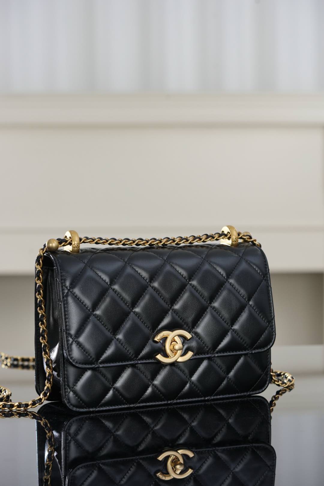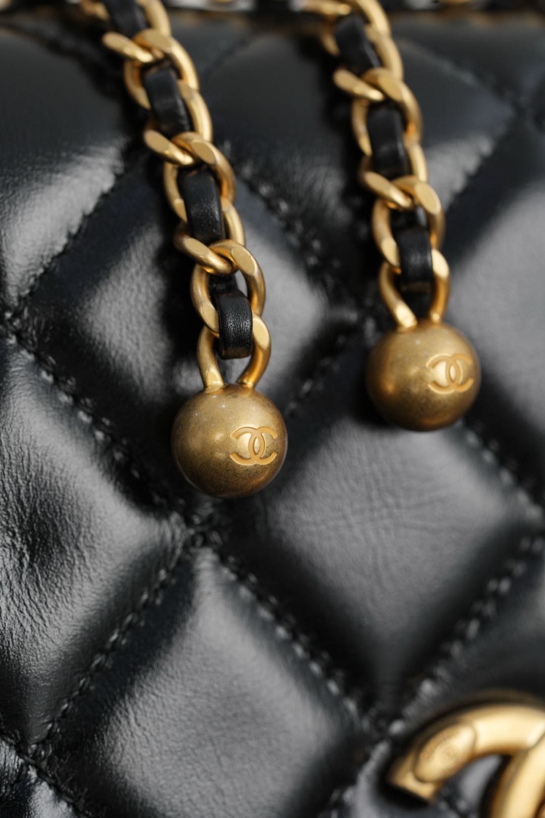 𝗖𝗛𝗔𝗡𝗘𝗟 𝟐𝟓𝐬 原厂小牛皮 双金球𝟐𝟐𝐜𝐦 黑色