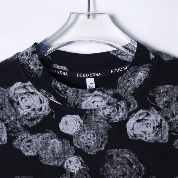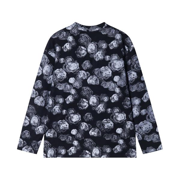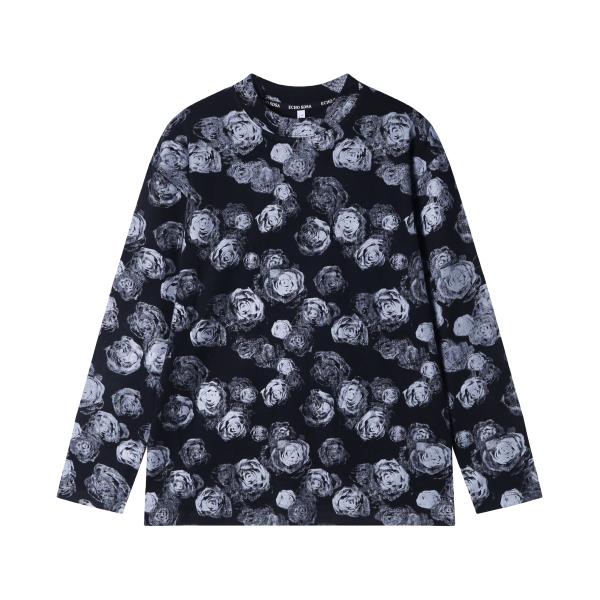 T1791秋季新款美式复古满印玫瑰花印花圆领长袖T恤情侣休闲上衣潮