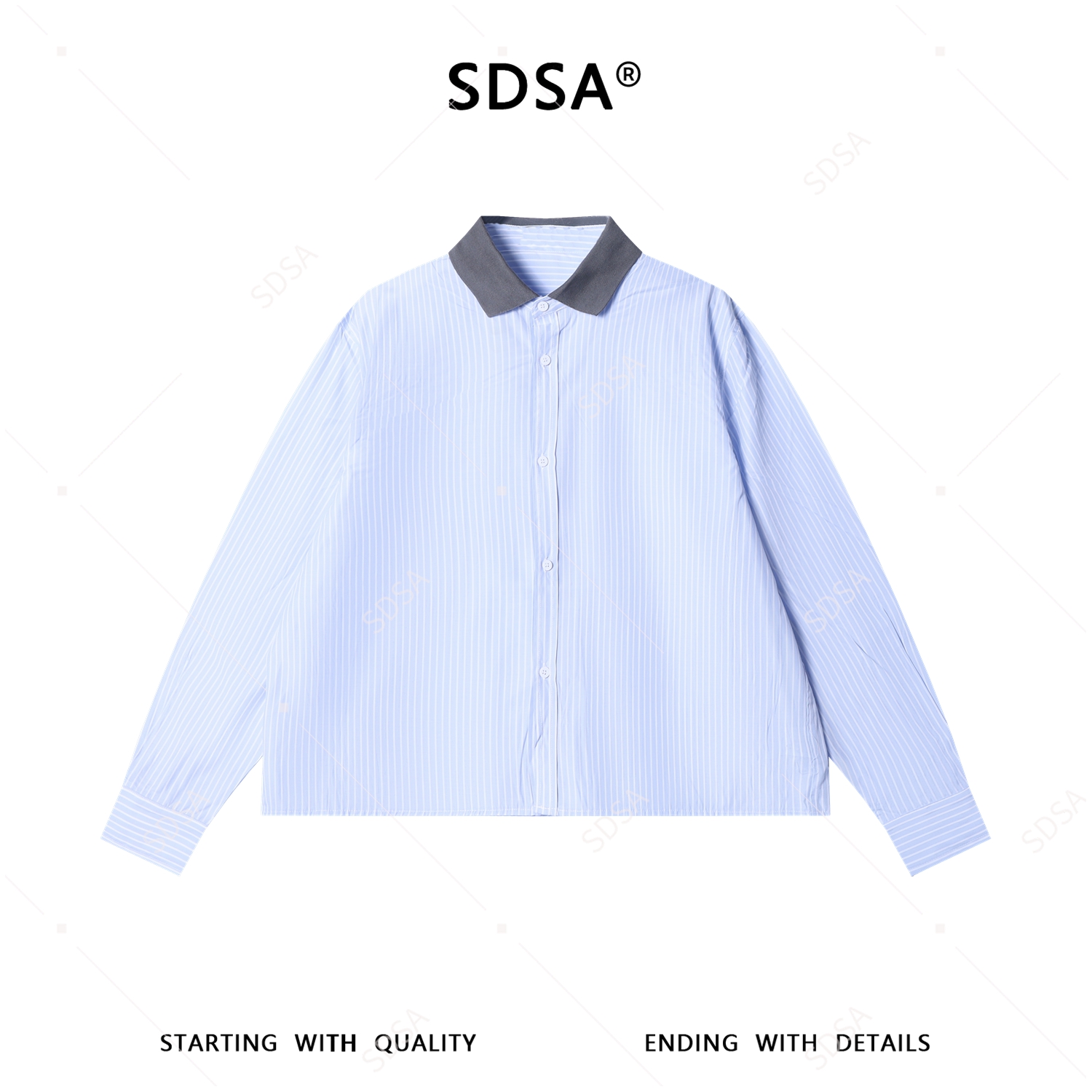 SDSA男装2026新款高贵轻奢韩系小众设计条纹拼接翻领长袖衬衫百搭