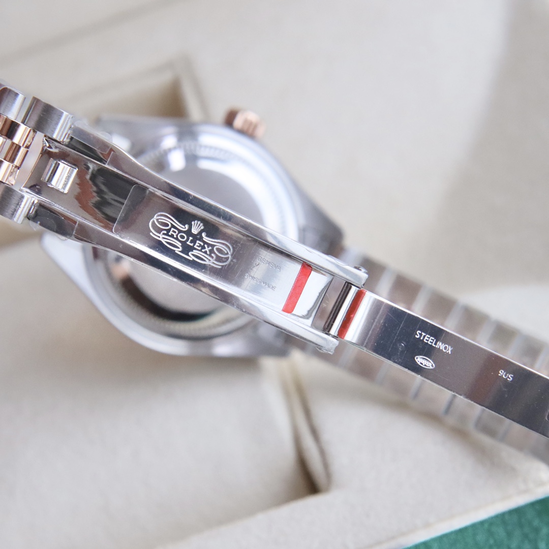 904L腕表表带和外圈底下的崭新双头粒连接方式,隐蔽式摺叠皇冠带扣,以铰接的劳力士皇冠标志开启。6字位内影圈以腐蚀工艺一表一码。绝不重复。认准独家品质