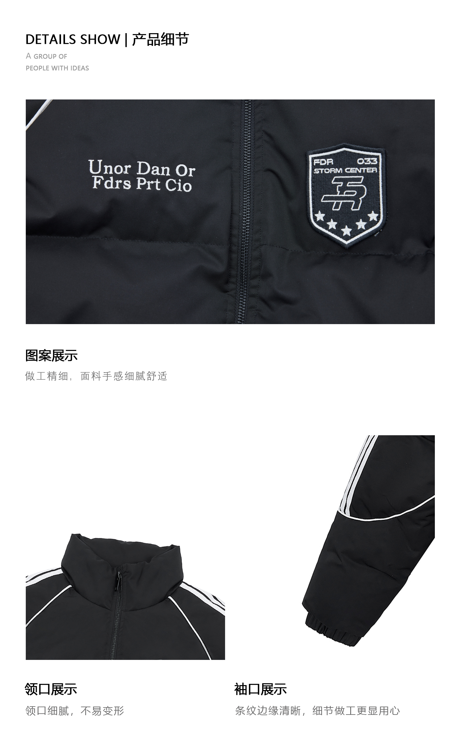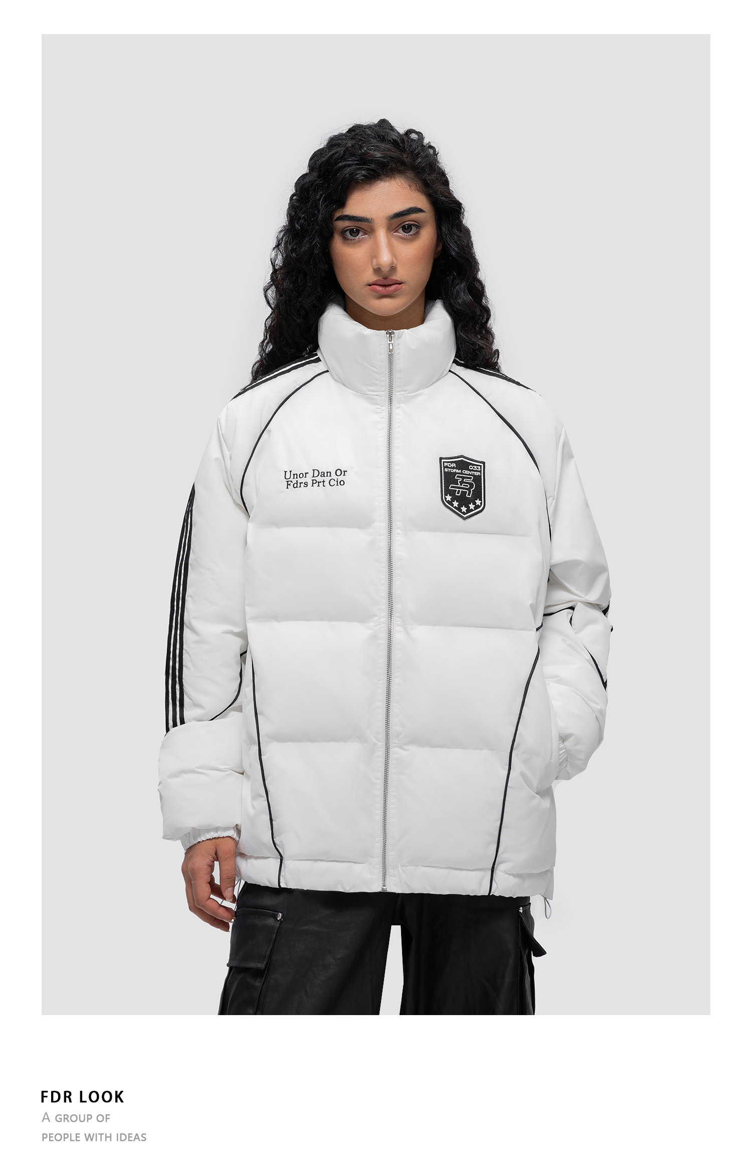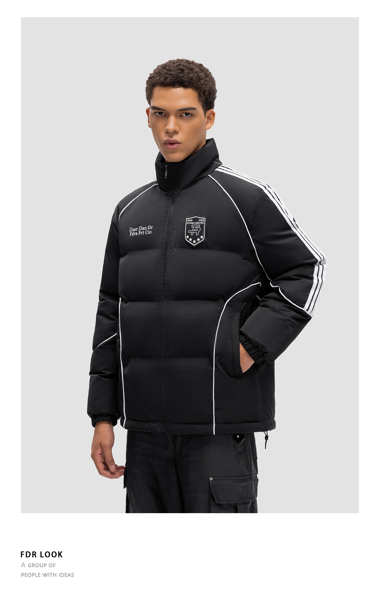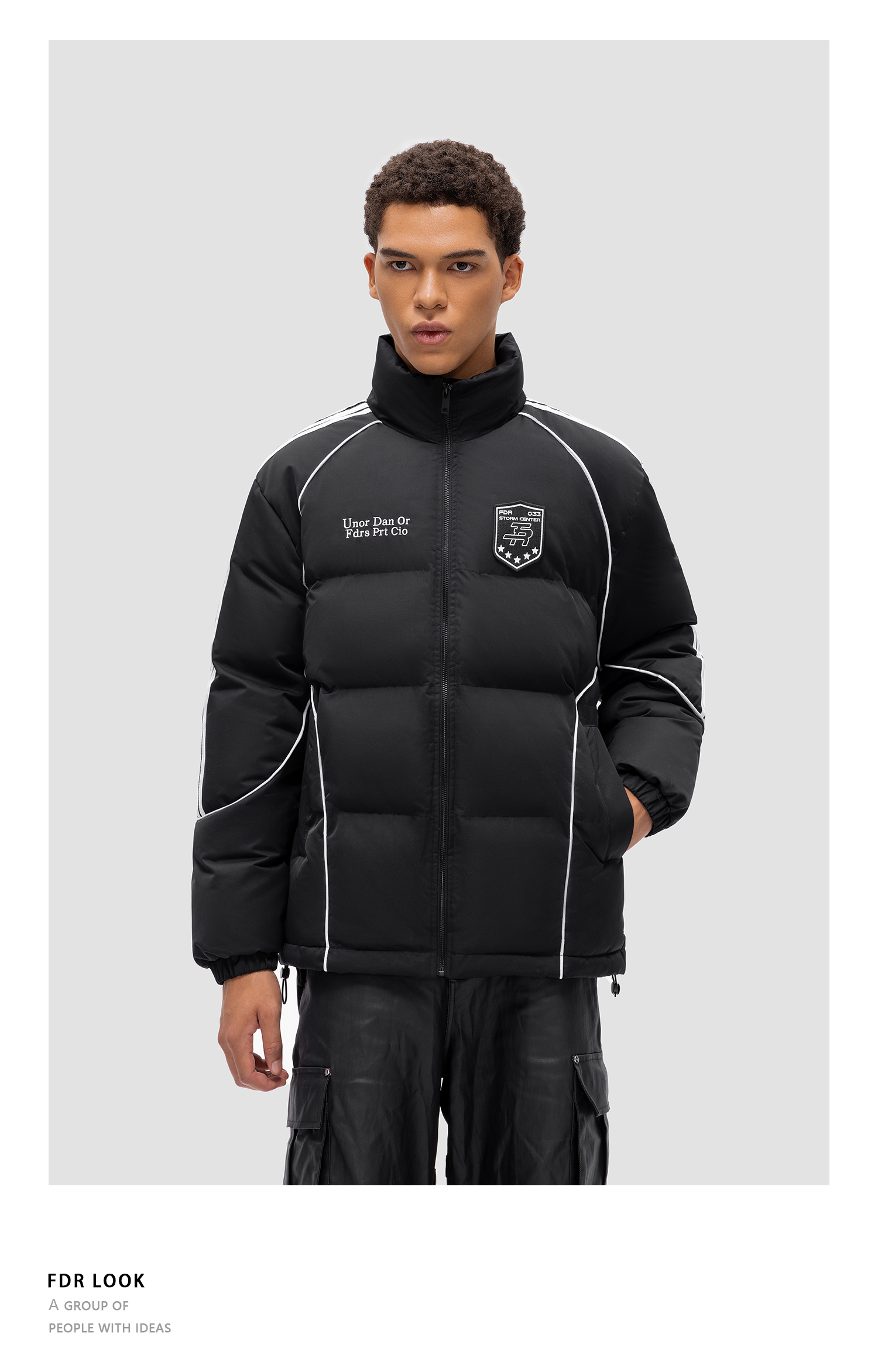 FDR 国潮美式嵌条刺绣棉衣棉服男女秋冬季加厚情侣条纹面包服外套