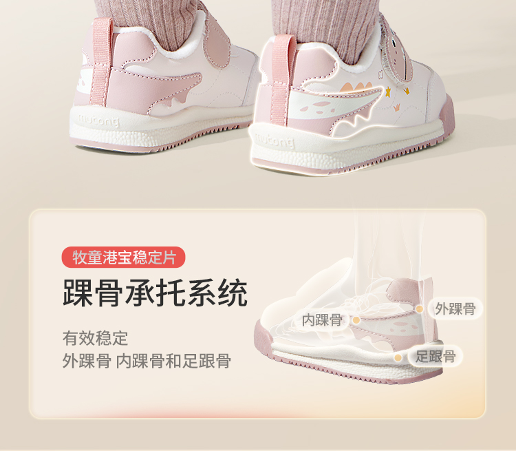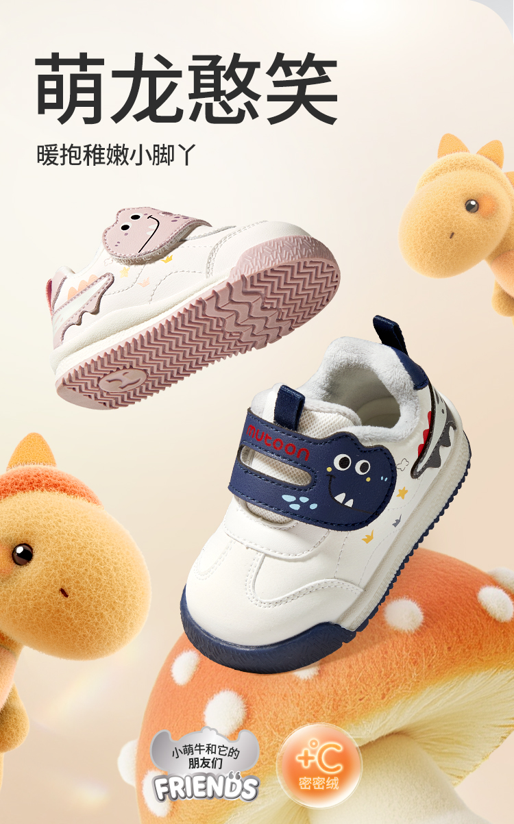 牧童2025冬季宝宝保暖加绒机能鞋防滑软底学步鞋儿童皮面加绒棉鞋