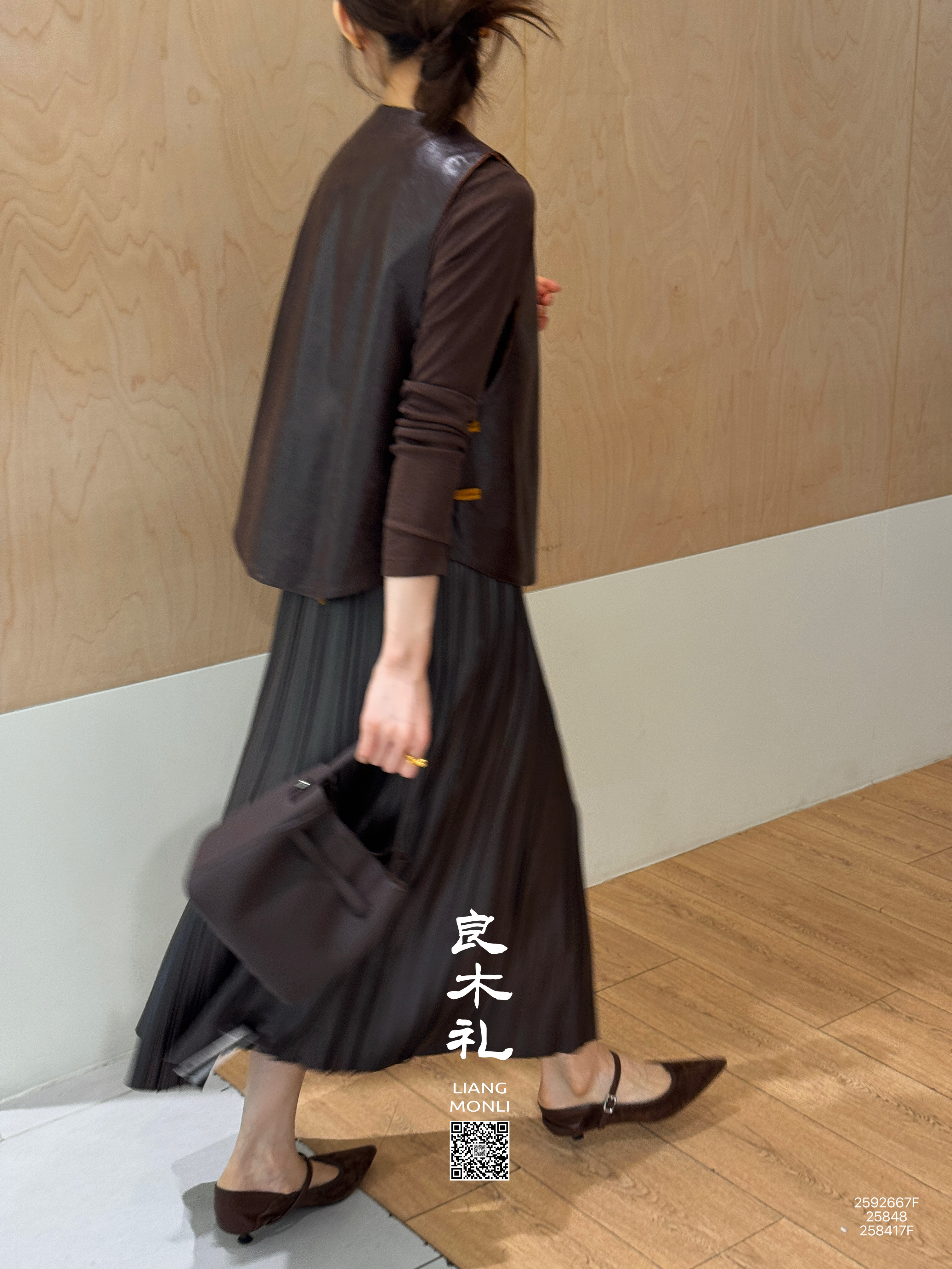 【特价不退不换】良木礼亮面百褶裙(Q2584171F)