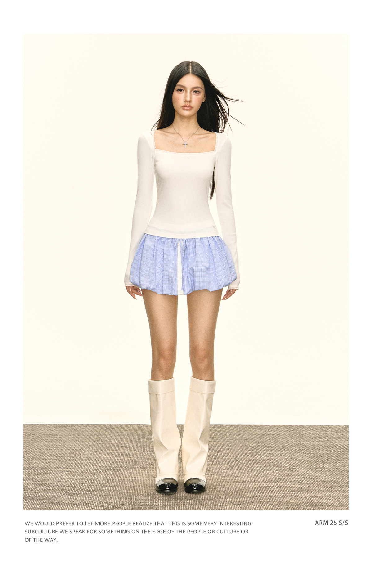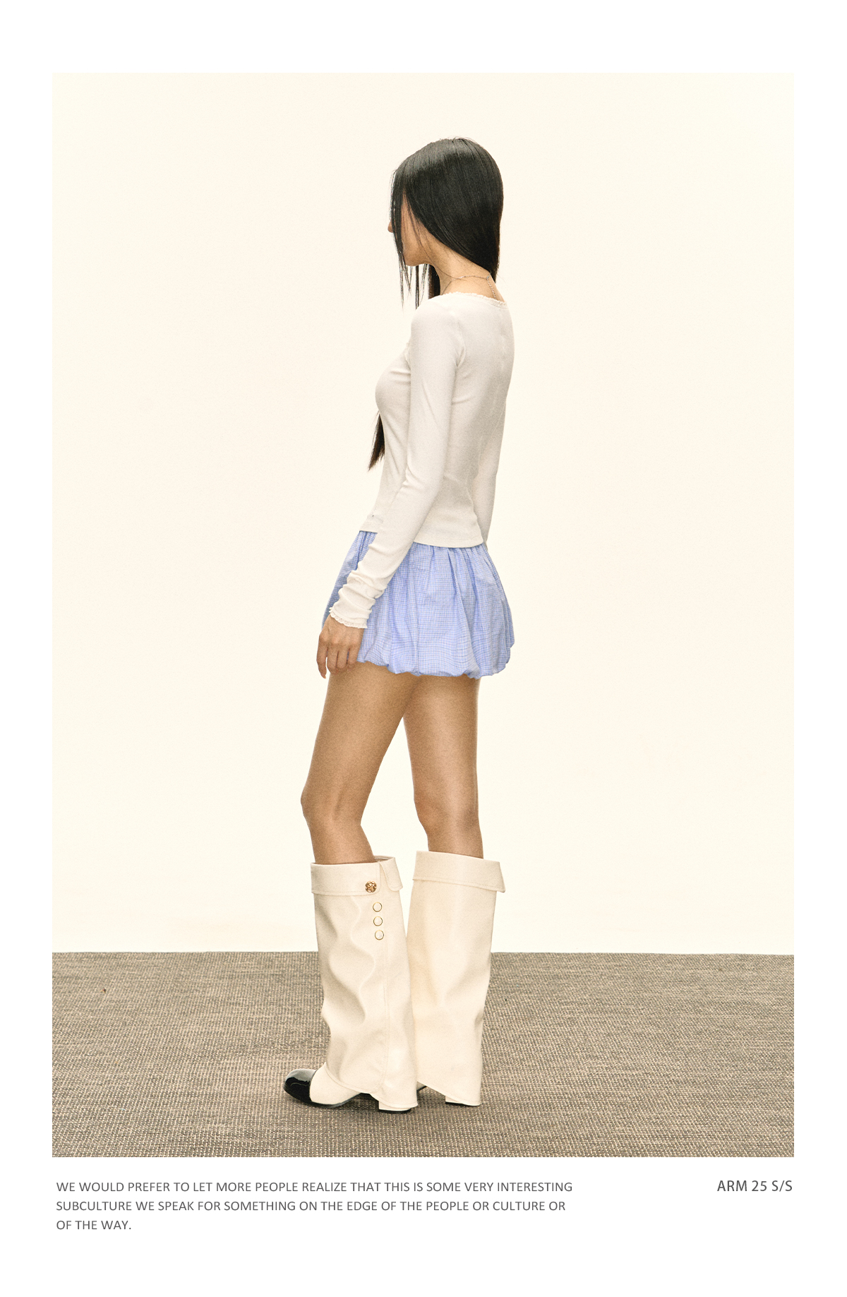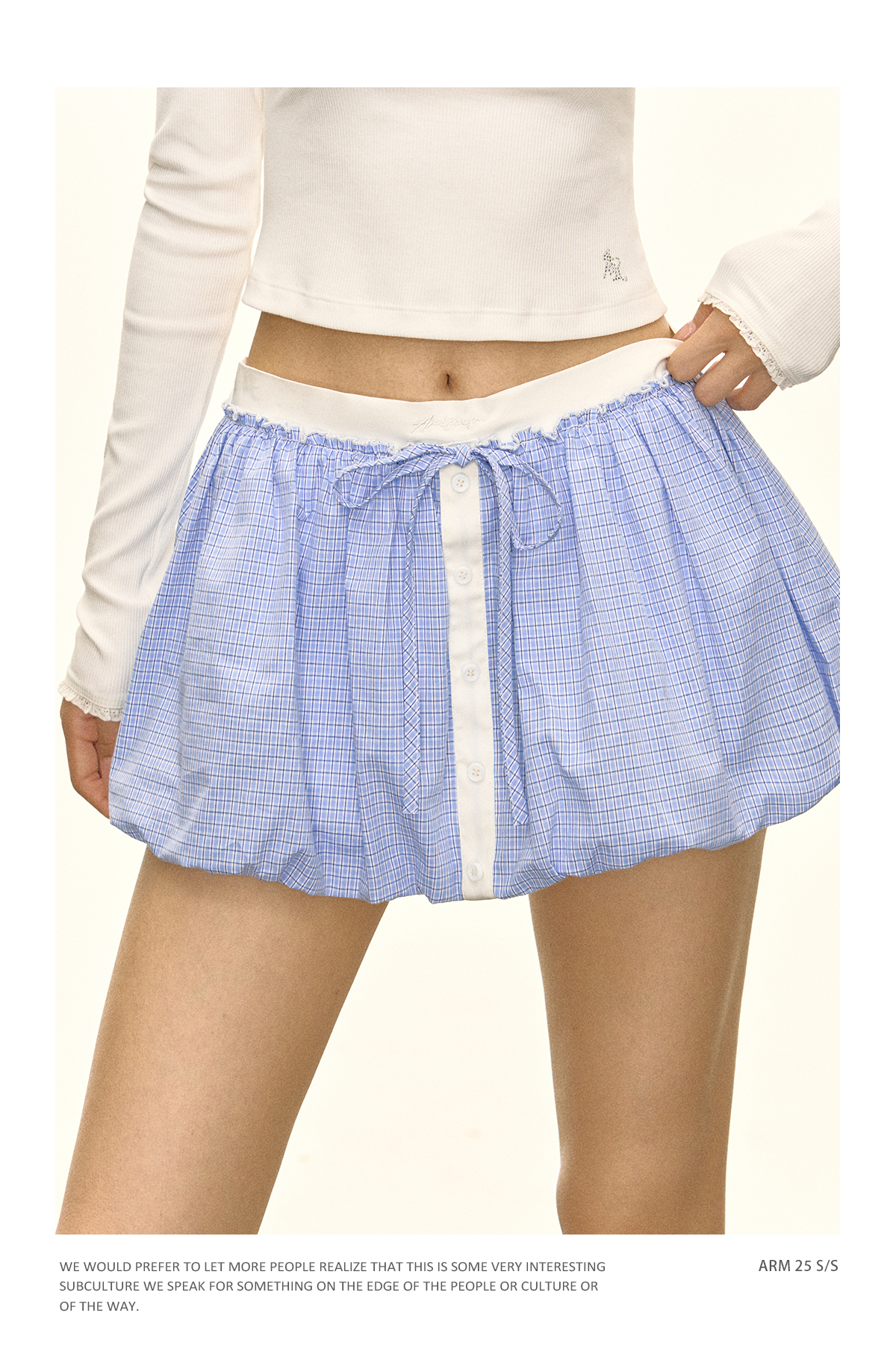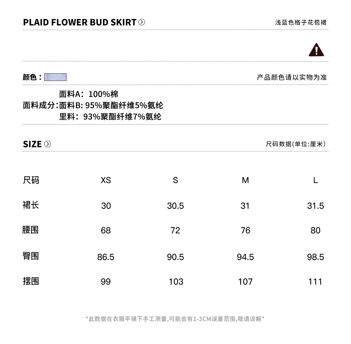 Ariseism 美式复古设计感蓝白格子花苞裙女秋季新款裙子