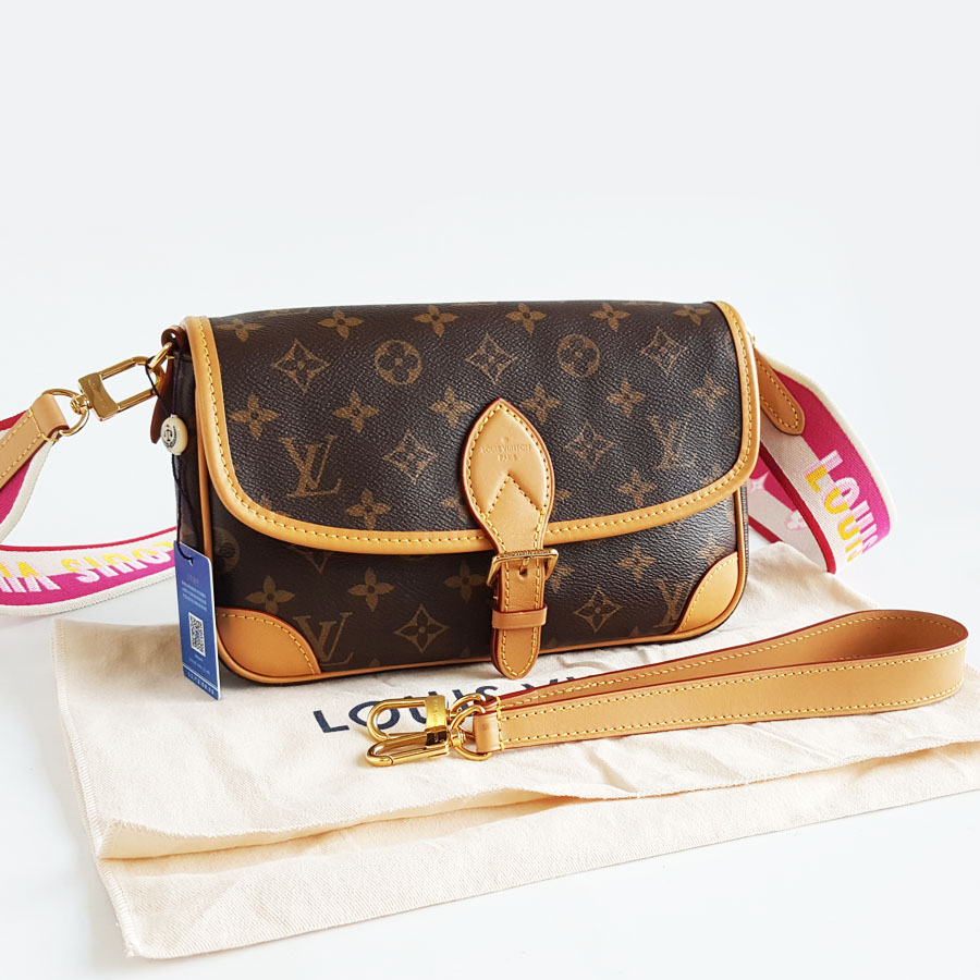 【95新】LV路易威登DIANE手袋M46049老花粉肩带DIANE法棍包单肩包女士240126AK07
